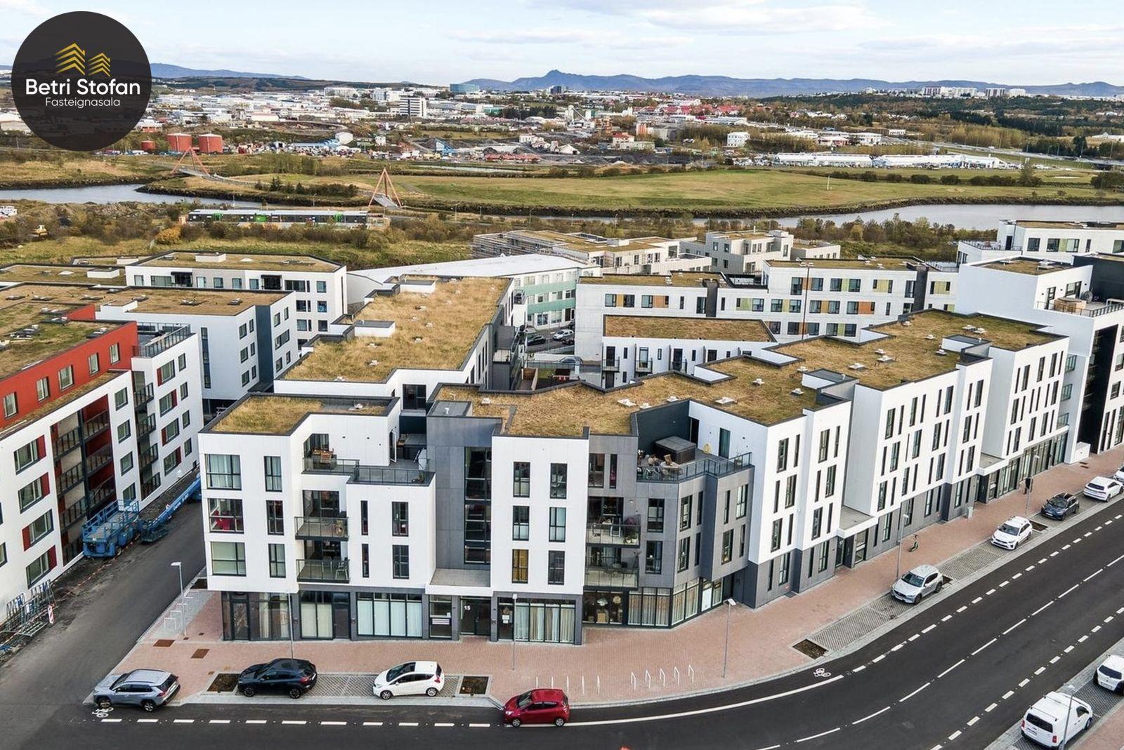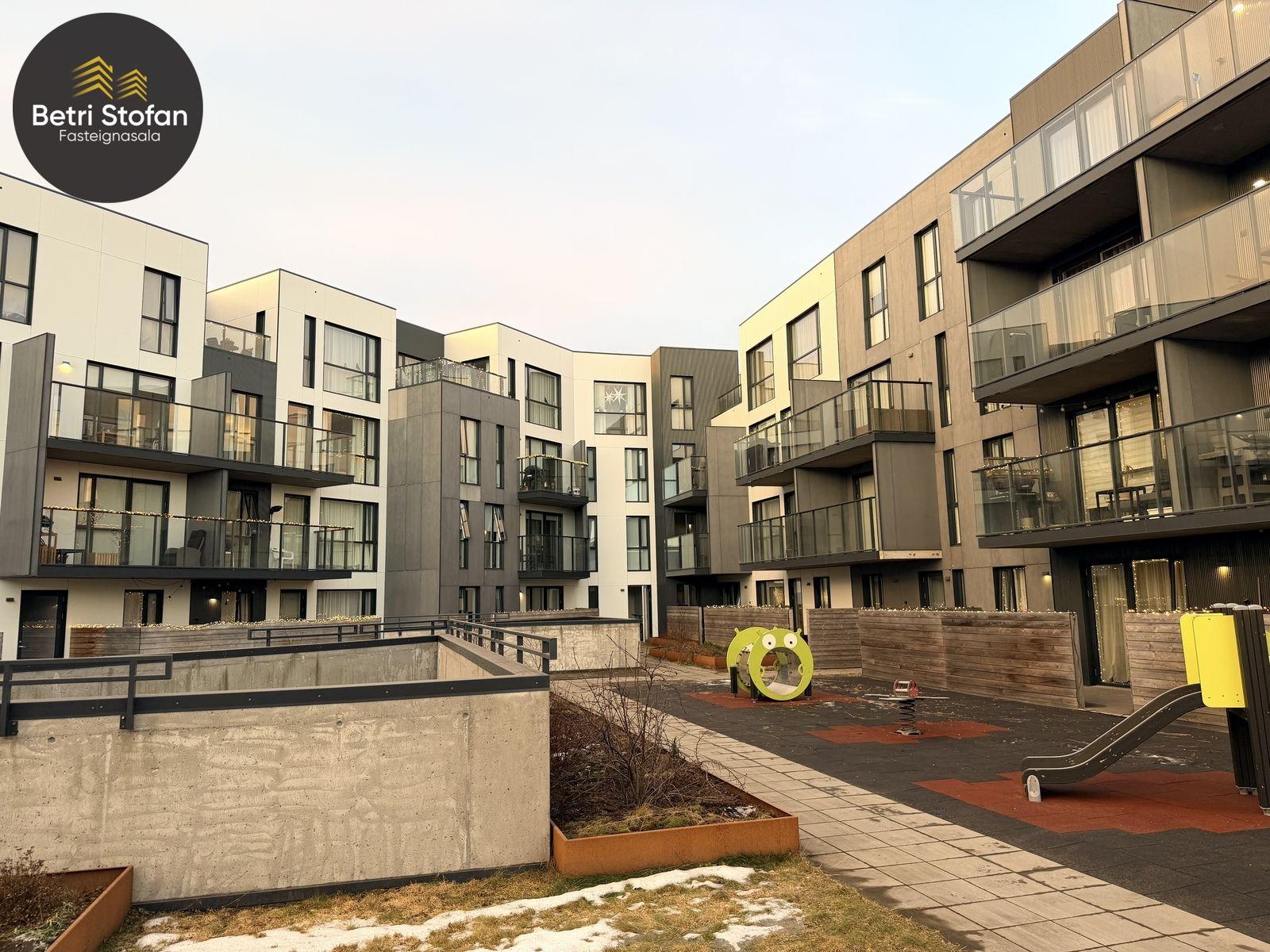 Nánari lýsing eignarinnar: Forstofa: er með góðum fataskápum. Stofa og eldhús: Eldhús, stofa, borðstofa og sjónvarpshol er í stóru opnu rými. Í eldhúsi er falleg Ítölsk viðararinnrétting með eldaeyju og er steinn á borðum, Innbyggður ísskápur, innbyggð uppþvottavél, háfur yfir eyju og helluborð. Stofa/borðstofa með gólfsíðum gluggum og gengið út á góðar svalir til suðvesturs. Baðherbergi: flísalagt bæði gólf og veggir. Góð innrétting, steinn á borðum og undirlímdur vaskur. Walk in sturta með glerskilrúmi upp í loft og handklæðaofn. Vegghengt salerni. Þvottahús: Þvottahús er með flísum á gólfi og viðar innréttingu. Þvottavél og þurrkari fylgir með í kaupum. Svefnherbergi: eru þrjú, rúmgóð og er vandað vinylparket á gólfum, fataskápar eru í öllum herbergjum og gólfsíðir gluggar Gólfhiti er í íbúðinni og vinylparket er á öllum gólfum nema þvottahúsi og baðherbergi. Glæsilegar ítalskar innréttingar og er steinn á borðum bæði í eldhúsi og á baðherbergi. Í snyrtilegri sameign er sameiginleg hjóla og vagnageymsla og innangengt úr sameign í bílageymsluna sem á sérmerkt stæði