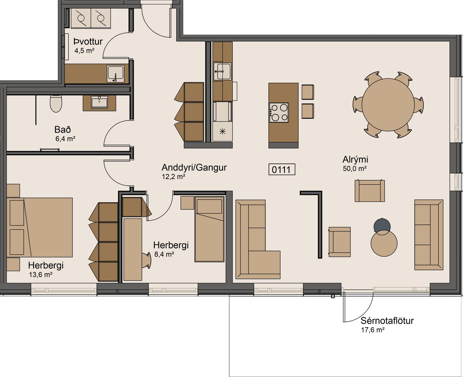 Allar íbúðir skilast fullbúnar með gólfefnum. Auk þess fylgir öllum íbúðum vönduð heimilistæki, með inniföldum ísskáp og uppþvottavél. Nánar um eign: Íbúð 0111, Stefnisvogur 30:Eignin er 3 herbergja herbergja íbúð á 1. hæð, merkt (0111), birt stærð 109,7 fm. Eigninni tilheyrir geymsla í kjallara merkt 0041, birt stærð 11,7 fm.