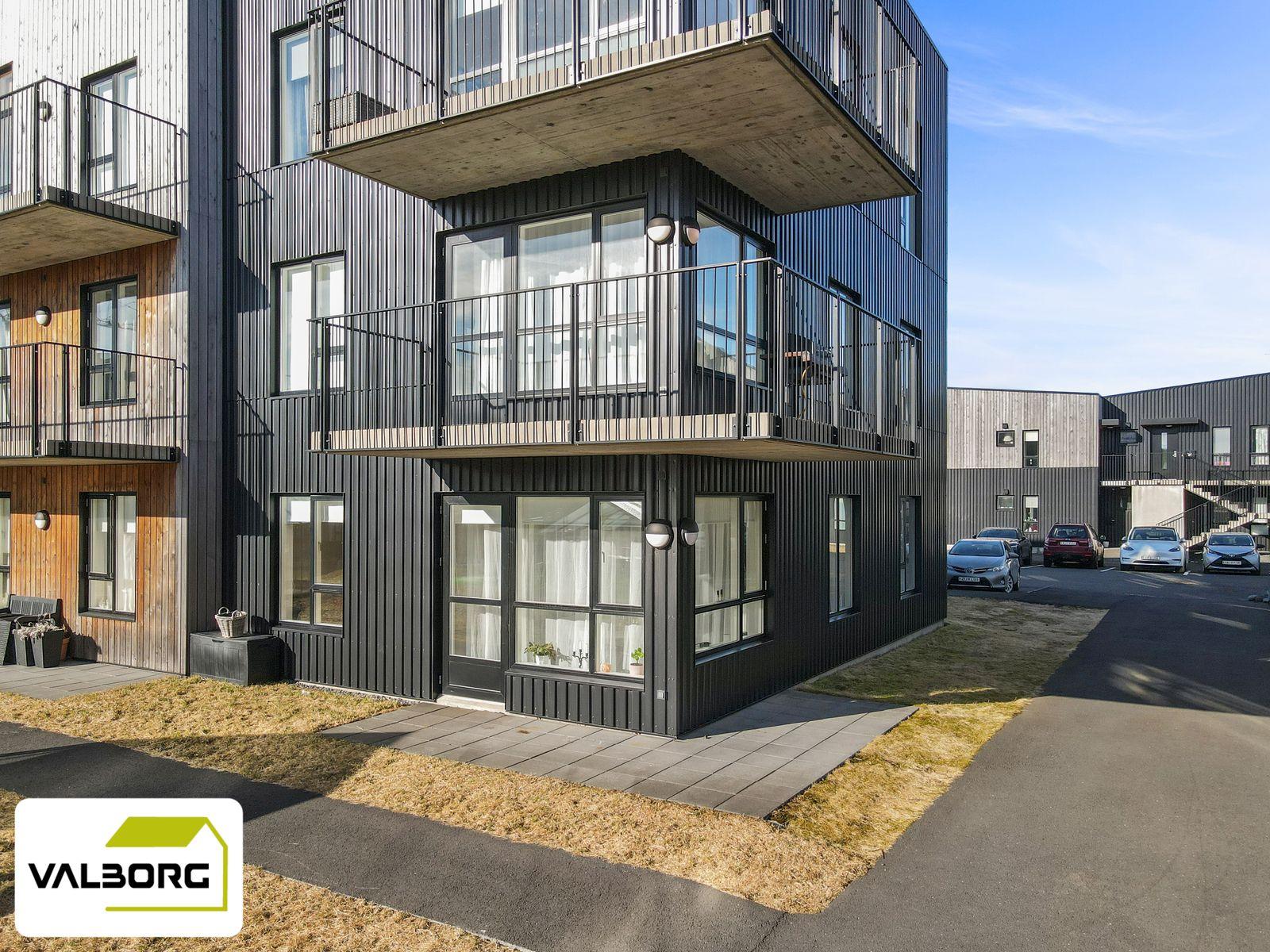 Íbúðin er nýleg, fjögurra herbergja á jarðhæð með sérinngangi.