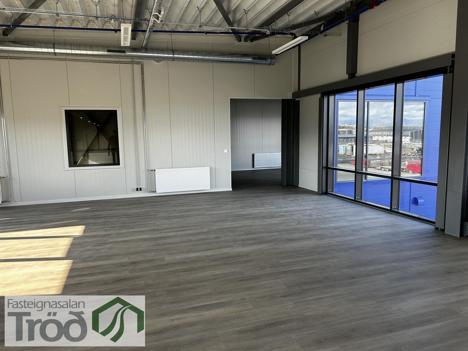 Tröð og Leigulistinn s. 511-2900 kynna nýtt skrifstofu- og iðnaðarhúsnæði í Hafnarfirði til leigu og afhendingar strax: Um er að ræða 1.637 m² nýtt iðnaðarhúsnæði á 2 hæðum með tæplega 200m² skrifstofuhúsnæði á 2. hæð og um 1.400m² (ca. 40 x35m) vinnusali á jarðhæð. Vinnusalurinn er með 2 aðkeyrsludokkum, auk 3 innkeyrsludyra, sem eru allar um 4m að hæð. Lofthæðin í vinnusalnum er rúmir 8 metrar, en hann er hitaður upp með hitablásurum, útbúinn sprinklerkerfi og er með góðri lýsingu. Innaf vinnusalnum er snyrting og starfsmannaaðstaða með sturtu. Skrifstofuhlutinn á 2. hæð skiptist í opinn vinnusal með parketi á gólfum og með aðgengi út á stórar svalir. Auk er þar að finna eldhús-og kaffiaðstöðu, ásamt snyrtingu. Lyfta er upp á 2. hæðina. Lóðin er frágenin með malbikuðu bílaplani allann hringinn. Áhugasamir hafið samband við sölumenn okkar í s. 511-2900 og pantið skoðun.