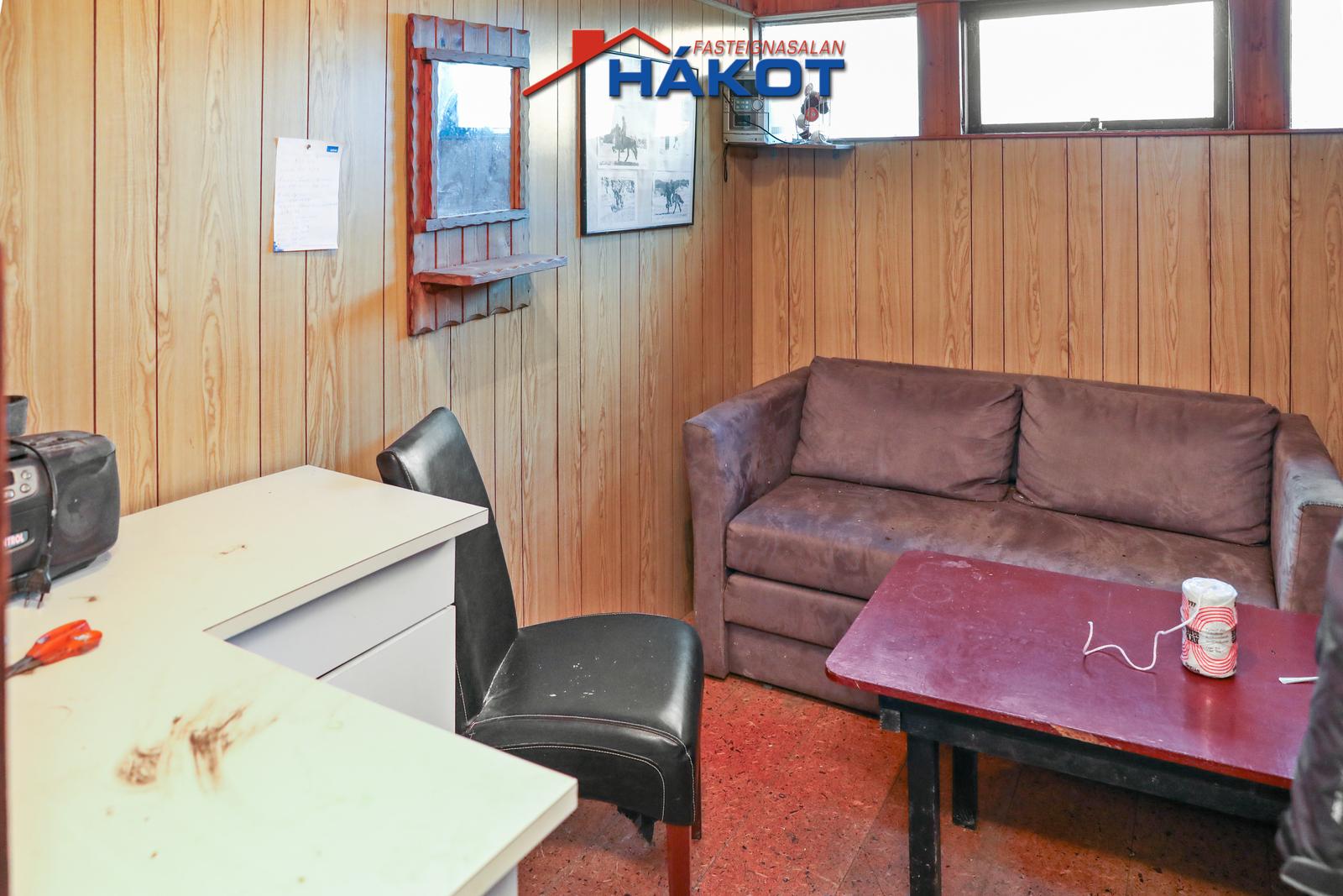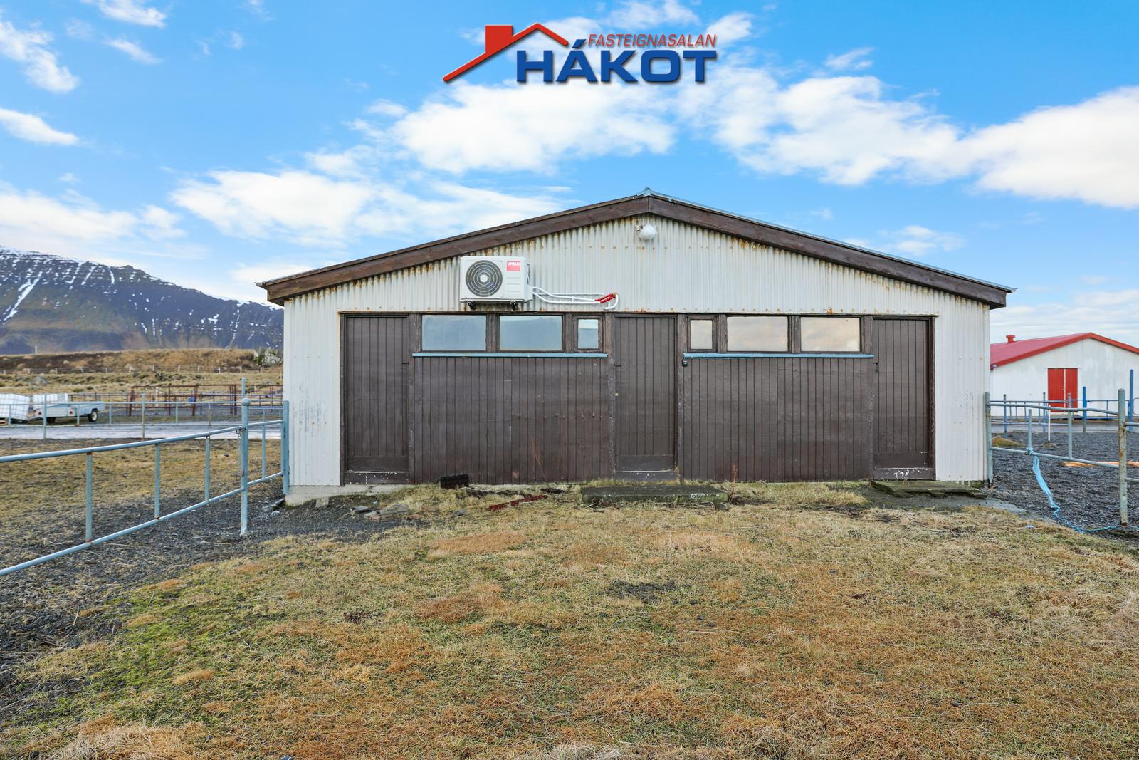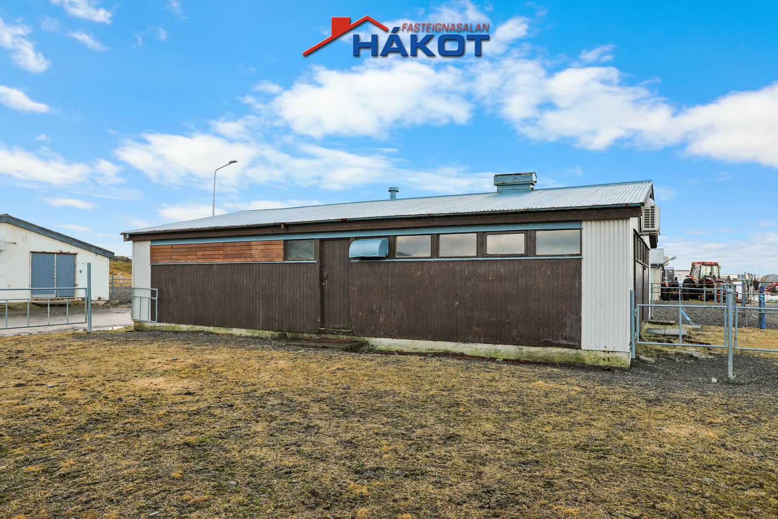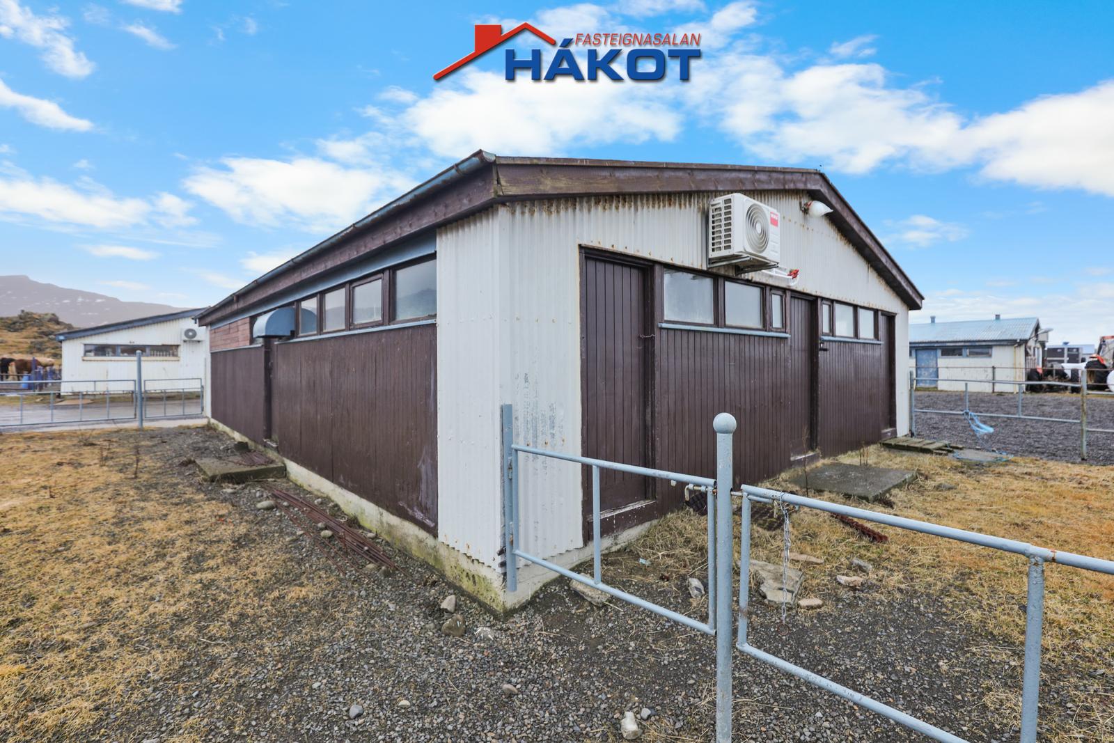 Um er að ræða hesthús byggt 1982 með afgirtu gerði. Húsið byggt fyrir 12 hesta, Hlöðu/geymslu (stór hurð, gluggi), Kaffistofu (innrétting, panill í lofti og á hluta af vegg). Salerni. Geymsla.
