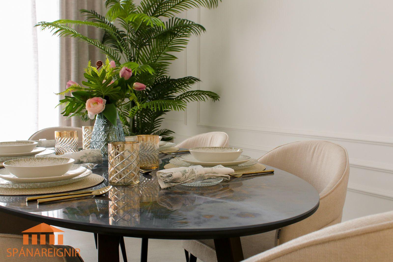 Nánari lýsing:Falleg aðkoma er að húsinu og skiptist það í gott eldhús, með góðri tengingu við útisvæði og stofu/borðstofu í rúmgóðu alrými með mikilli lofthæð sem gefur glæsilegt yfirbragð. Rafmagnstæki fylgja í eldhúsi.