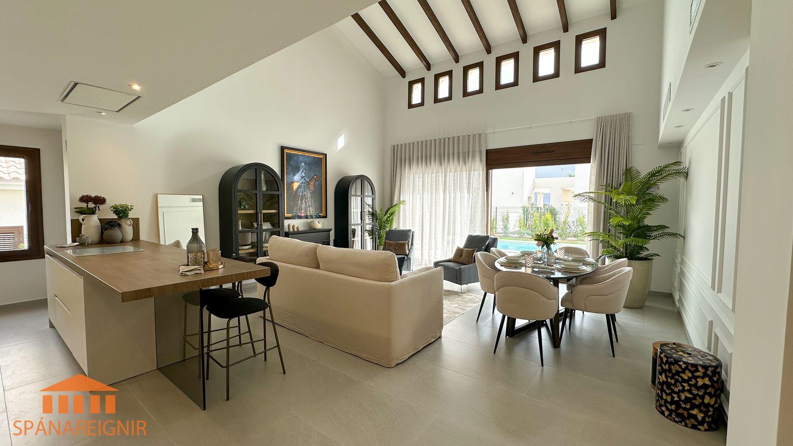 *GLÆSILEGAR GOLFVILLUR Á LA FINCA GOLFVELLINUM*Sérlega vönduð og falleg, vel skipulögð og rúmgóð og ný einbýlishús á einni hæð í stuttu göngufæri frá klúbbhúsinu við hinn glæsilega La Finca golfvöll. Góð sér lóð með einkasundlaug. Um 30 mín akstur suður frá Alicante. Glæsileg hús með góðu alrými, þremur svefnherbergjum, fataherbergi og tveimur baðherbergjum. Mikil lofthæð í alrými gefur glæsilegt yfirbragð. Sér lóð með einkasundlaug. Bílastæði inni á lokaðri lóð.