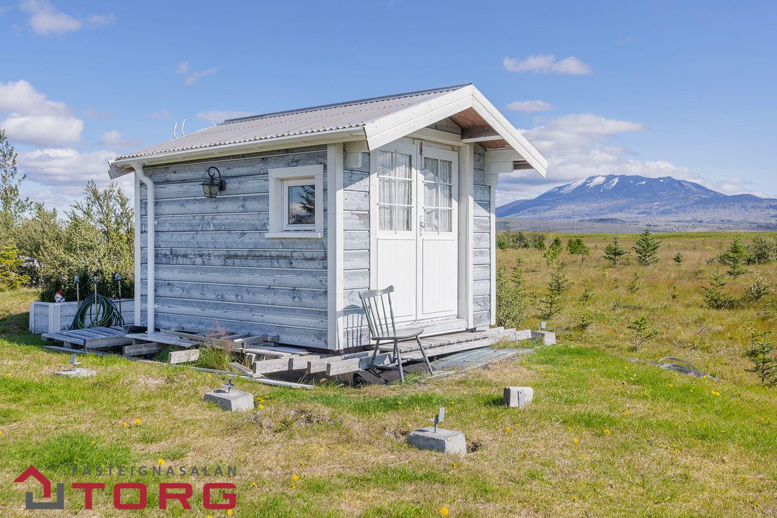 Mosabraut 8 – 27 m² sumarhús á 5.615 m² eignarlóð, fullbúið en óskráð. Húsið skiptist í forstofu, eldhús, baðherbergi, stofu og geymslu.