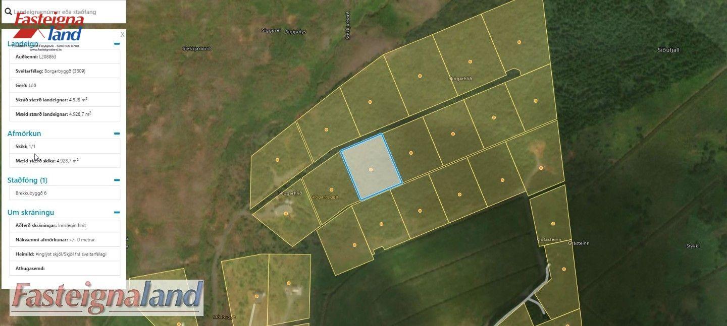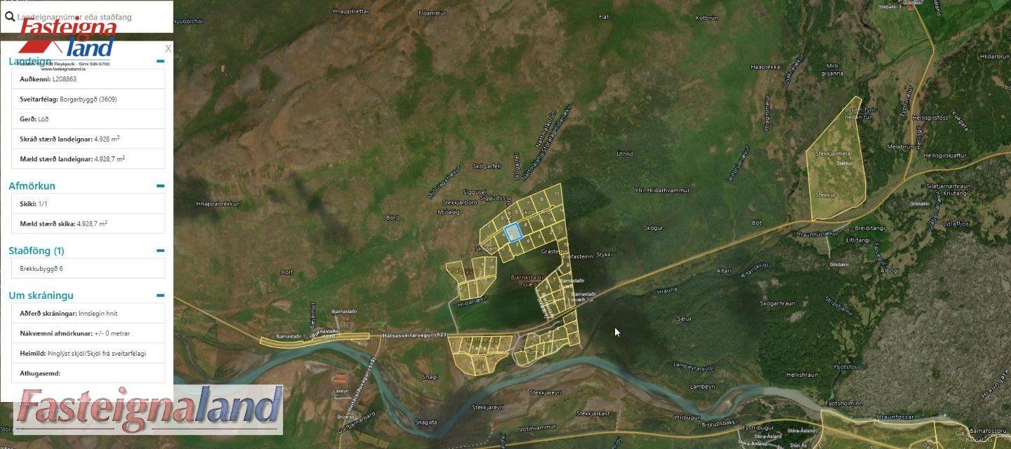 Um er að ræða 4.928 fm leigulóð í landi Bjarnastaða í Hvítársíðu, aðeins 5-10 min akstur frá Húsafelli. Lóðin er leigð til 25 ára í senn með forleigurétti áfram að þeim tíma loknum. Stofngjald í upphafi eru 950.000 kr. Árlegt leigugjald lóðar er ca. 233.000 kr. Hitaveita kostar um 880.000 kr í tengigjald og mánaðargjaldið er um 9-10 þúsund krónur. Gámastöð fyrir sorp er á svæðinu.