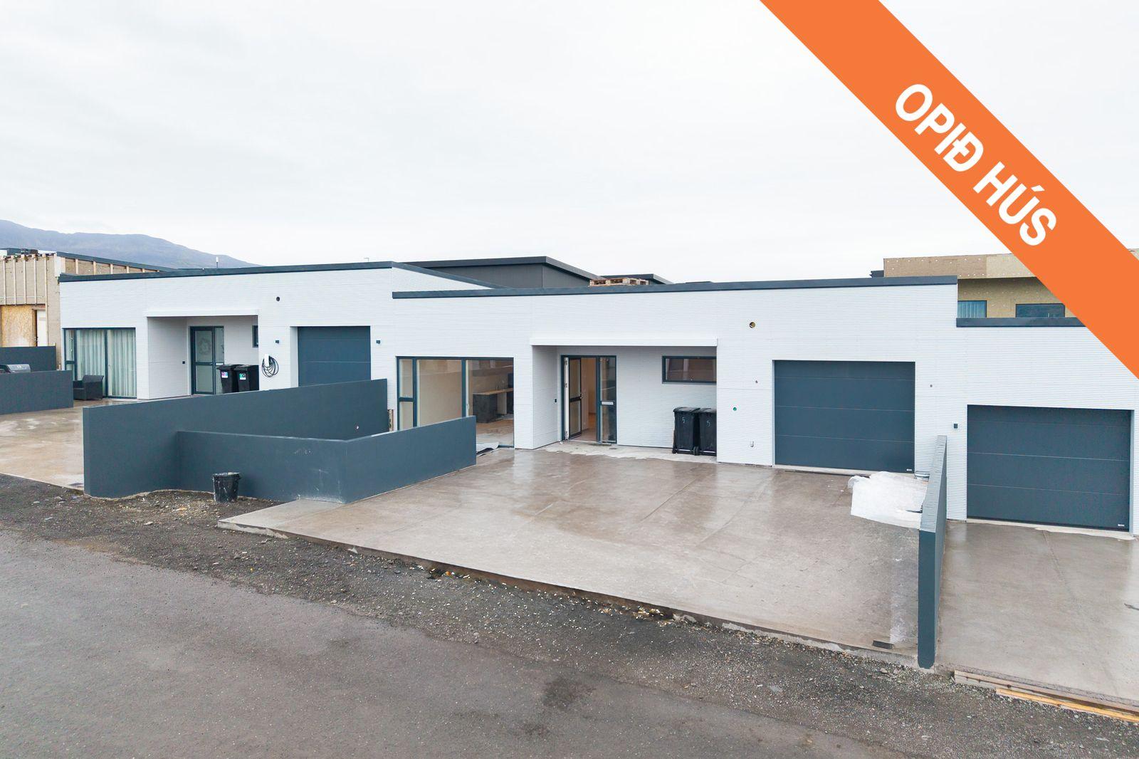 Húsið skiptist í. Forstofu, hol, stofu og eldhús í opnu rými, baðherbergi, gestasalerni, þrjú svefnherbergi, geymsla með skáp, þvottahús og bílskúr.