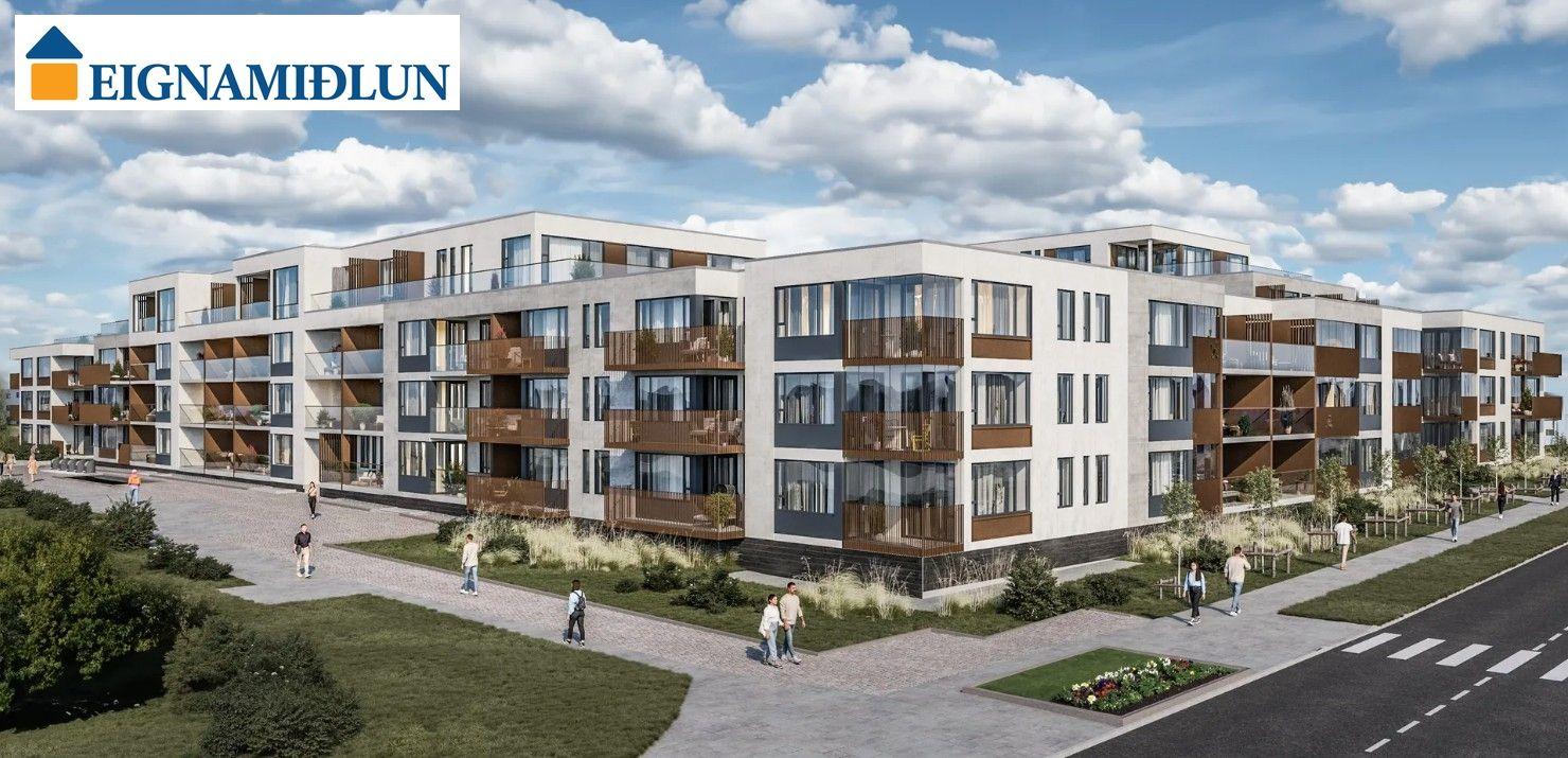 INNRÉTTINGAR: Eldhúsinnréttingar eru sérsmíðaðar frá Selós. Skápar eru úr vönduðu stitsterku melamin efni. Vönduð heimilistæki eru í íbúðum sem eru frá AEG. Kæli-/frystiskápur og uppþvottavél eru innbyggð í innréttinguna og spanhelluborð. Dekton – Rem steinborðplötur eru í öllum eldhúsum og Silestone – Nolita steinborðplötur eru á böðum. Gólfhiti er í gólfi baðherbergis auk handklæðaofns. Bílastæði í kjallara fylgja öllum íbúðum og möguleiki er á að kaupa viðbótarstæði.