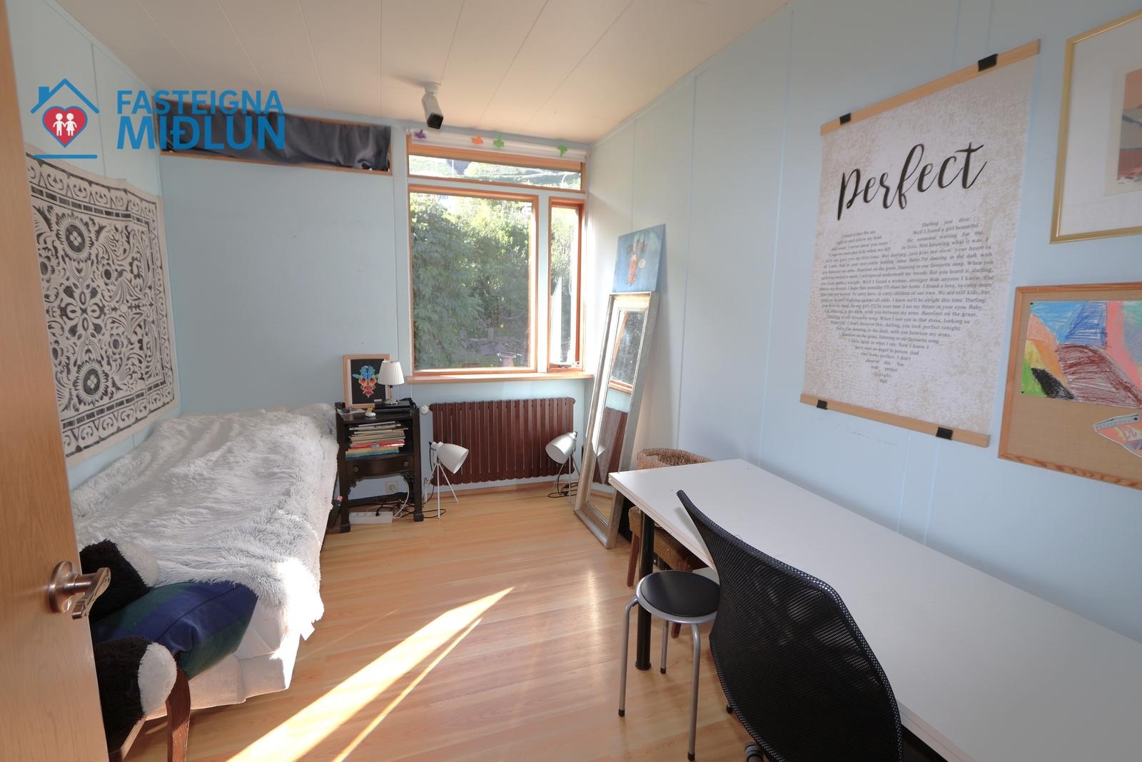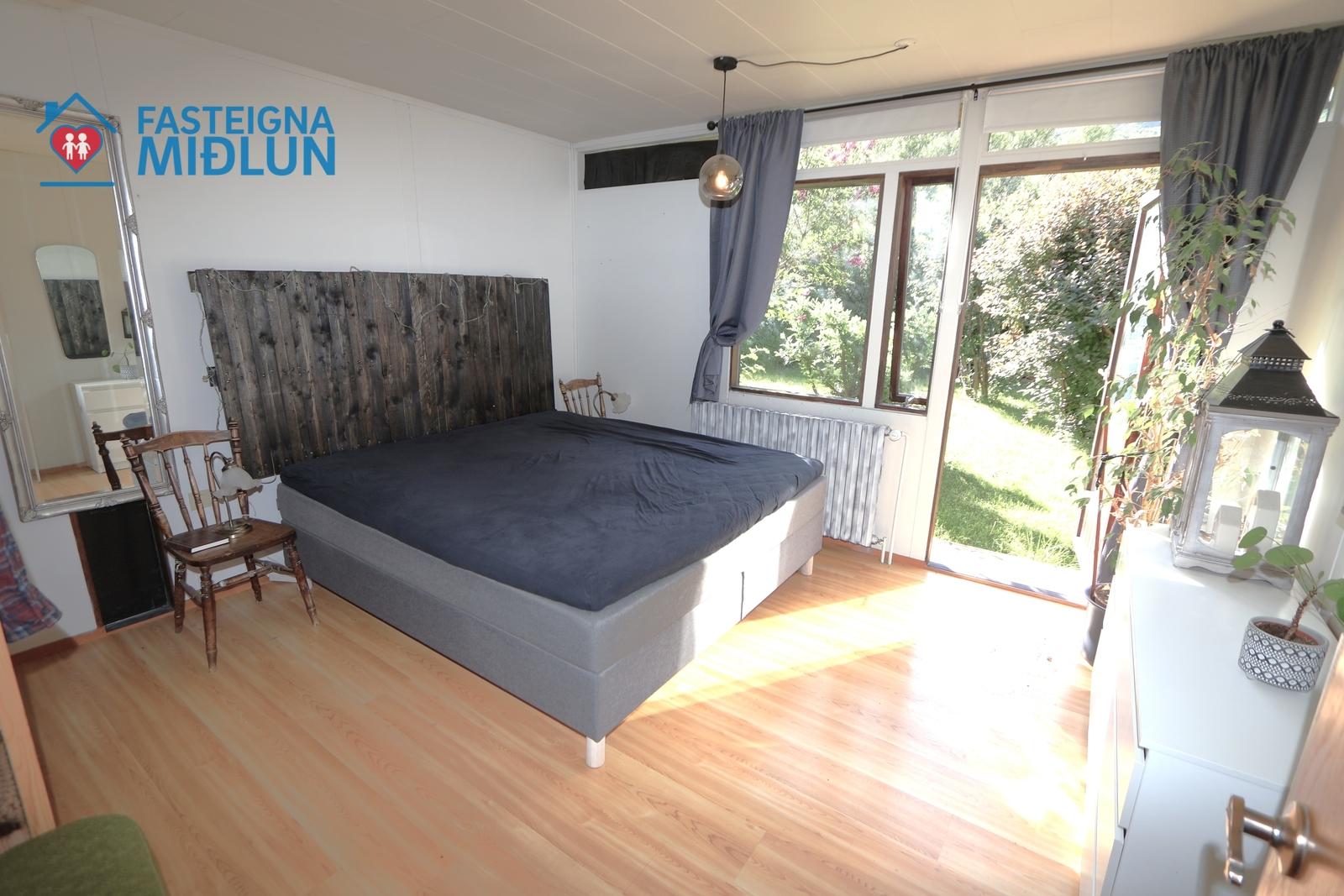Svefnherbergi: eru fimm talsins og eru misstór. Hjónaherbergi er með sérútgang út í garð bak við eignina.