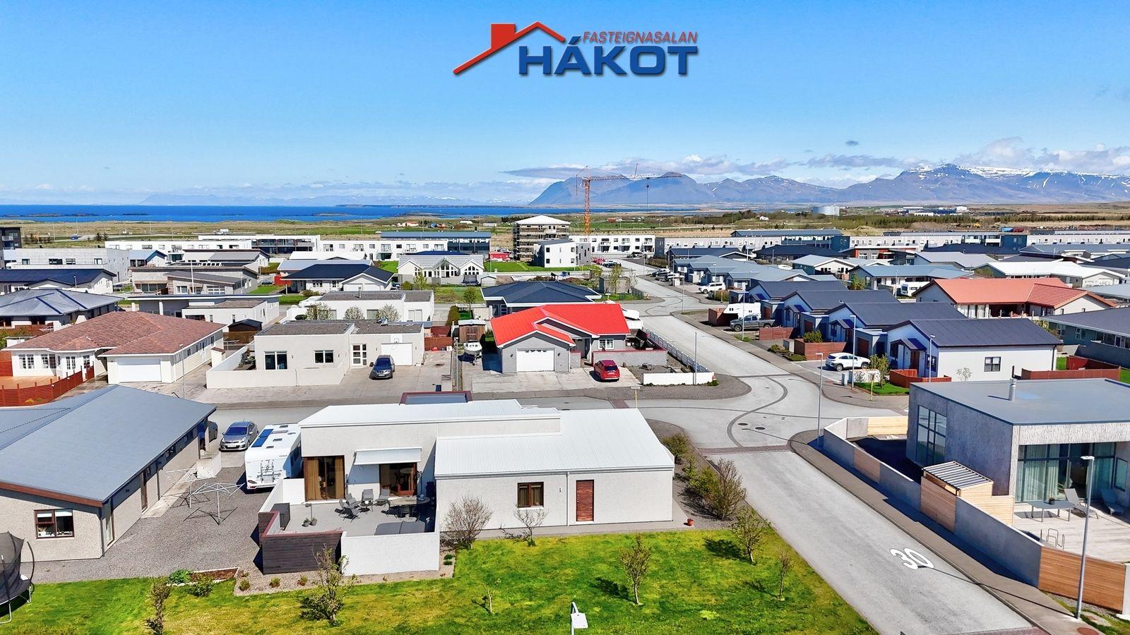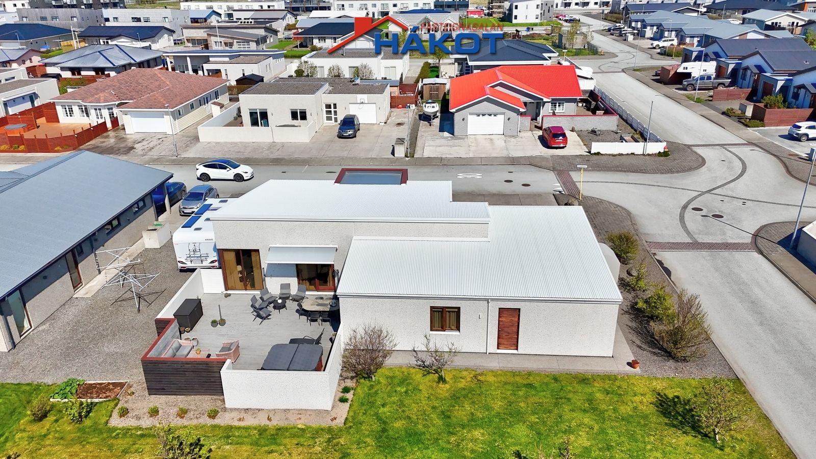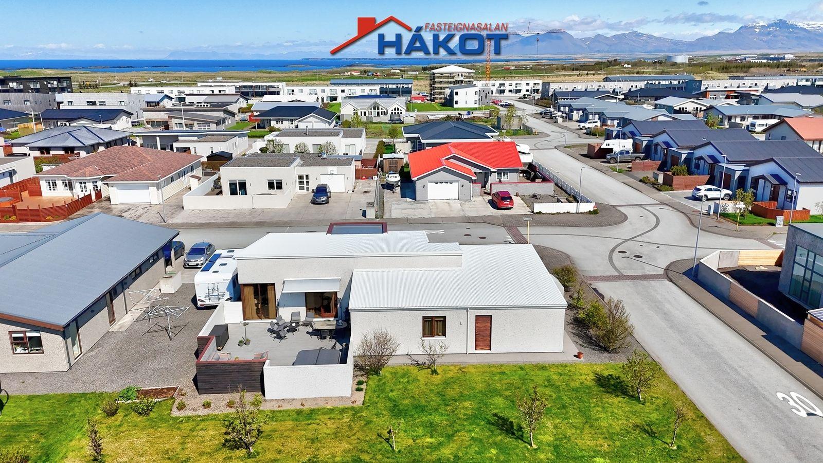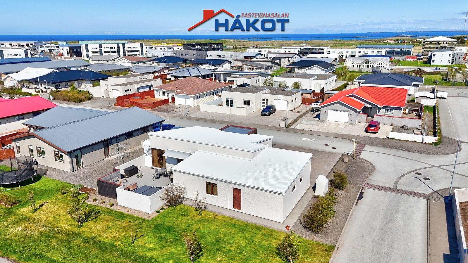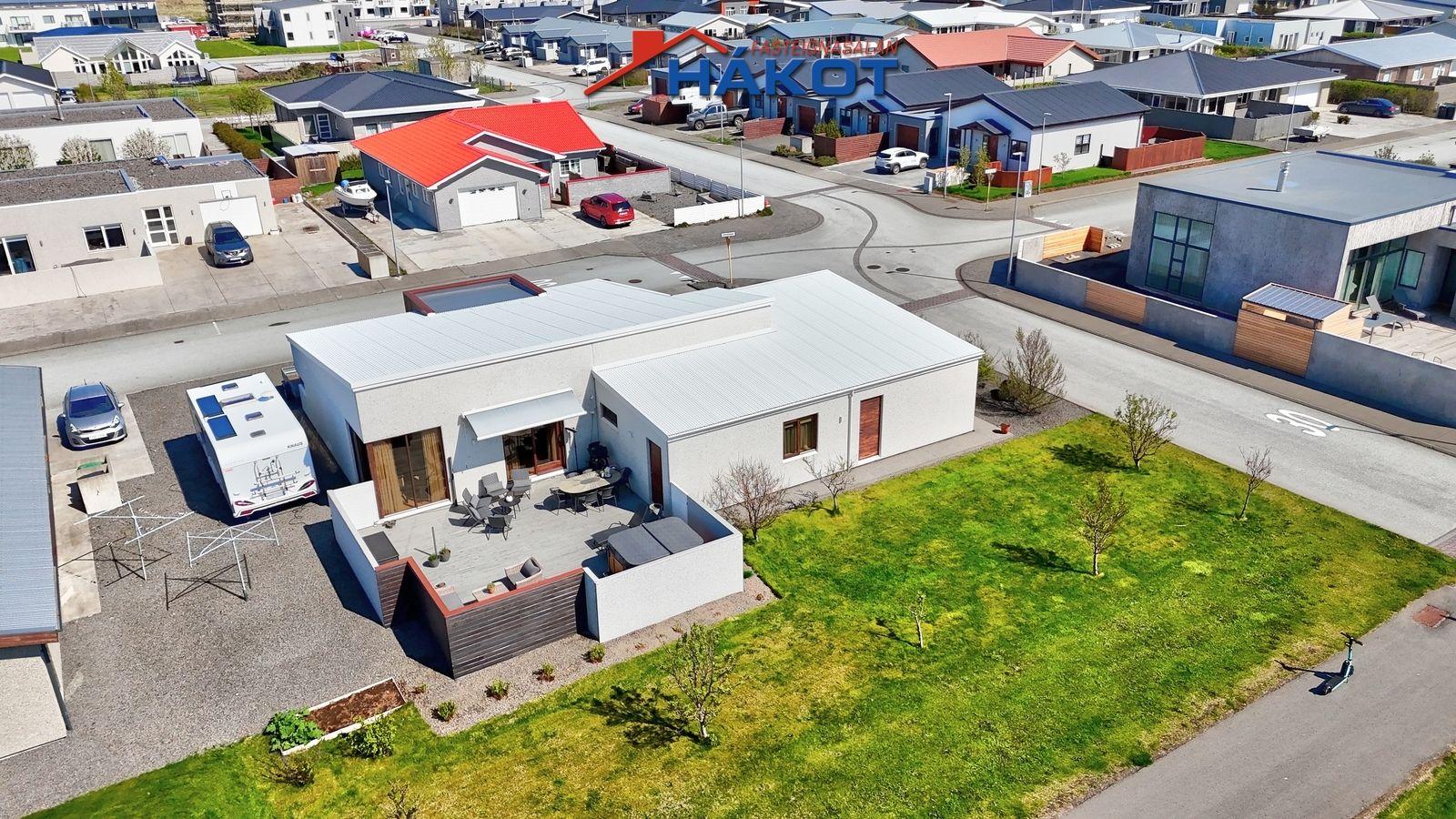 ANNAÐ: Gólfhiti með stýringu. Hátt til lofts. Stór verönd m/heitum pott. Steypt innkeyrsla (hiti í hluta). Hús úr forsteyptum einingum. Hallogenlýsing.