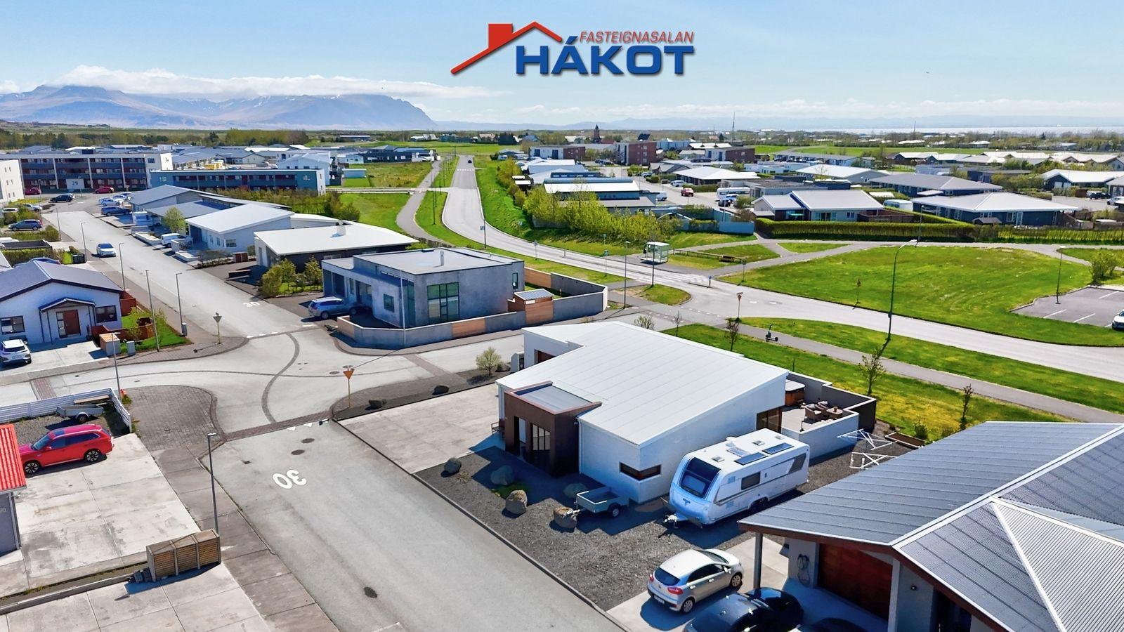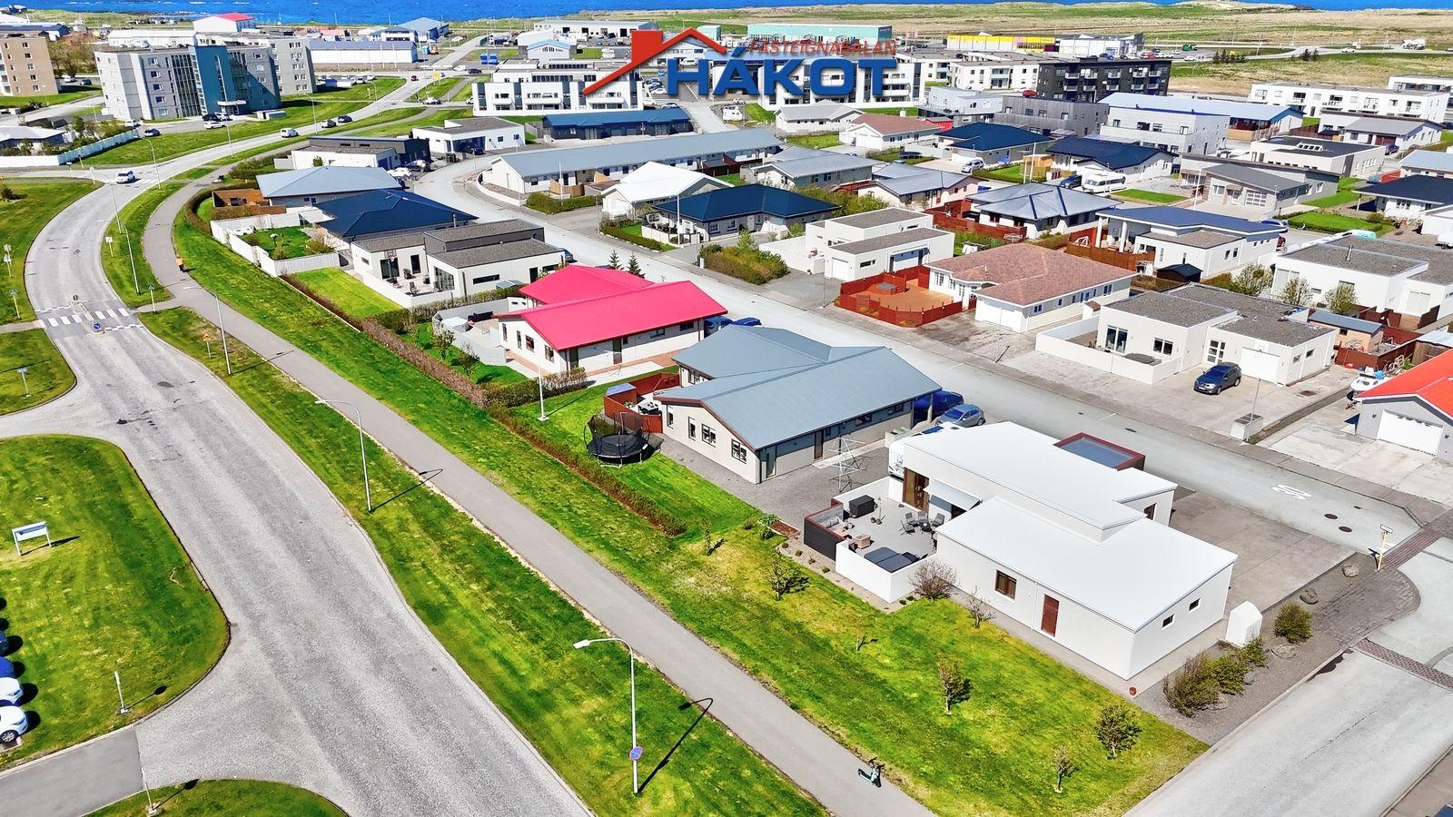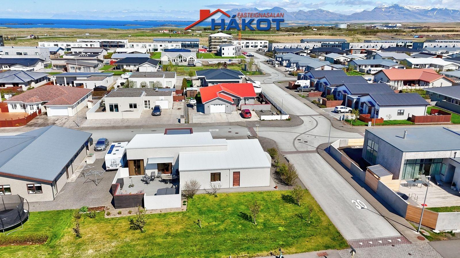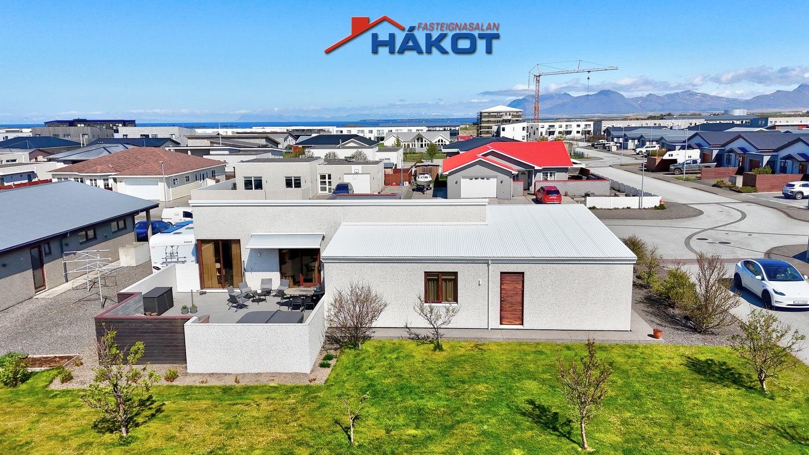ANNAÐ: Gólfhiti með stýringu. Hátt til lofts. Stór verönd m/heitum pott. Steypt innkeyrsla (hiti í hluta). Hús úr forsteyptum einingum. Hallogenlýsing.