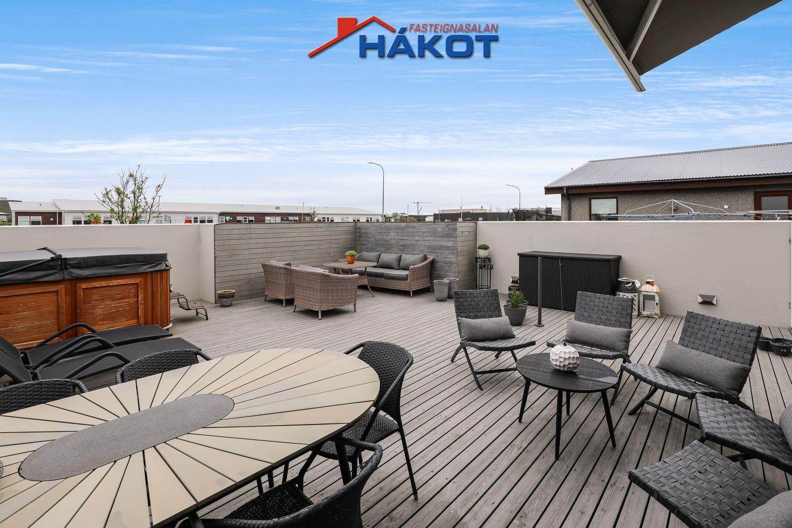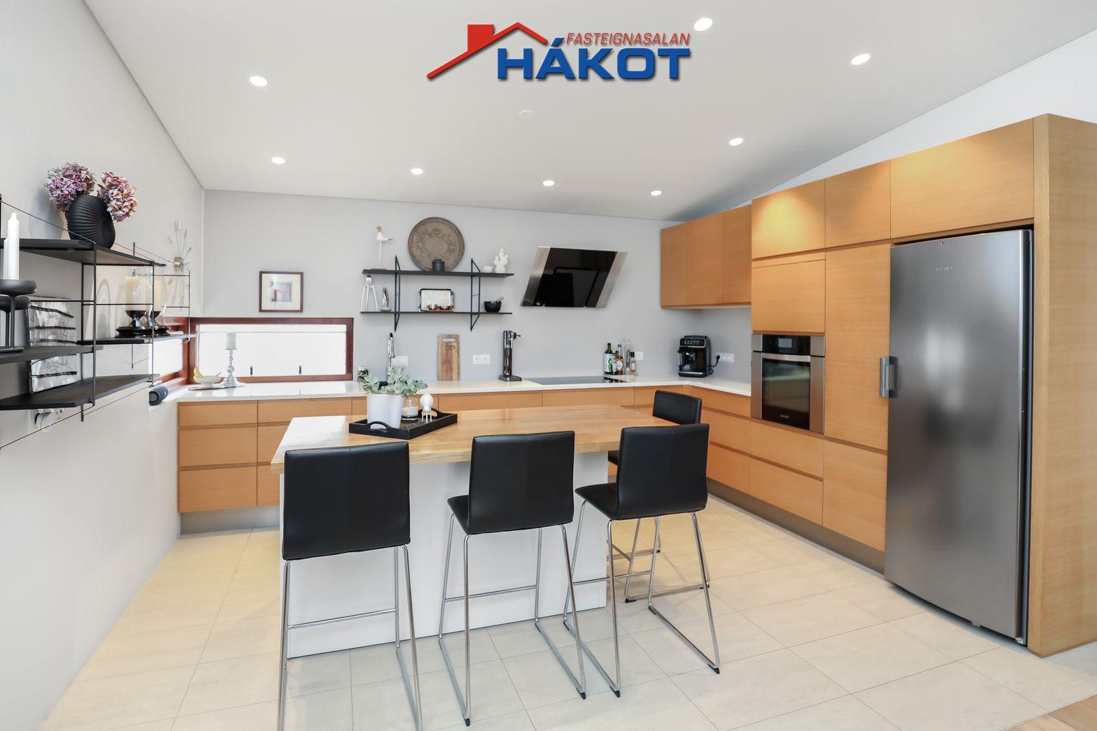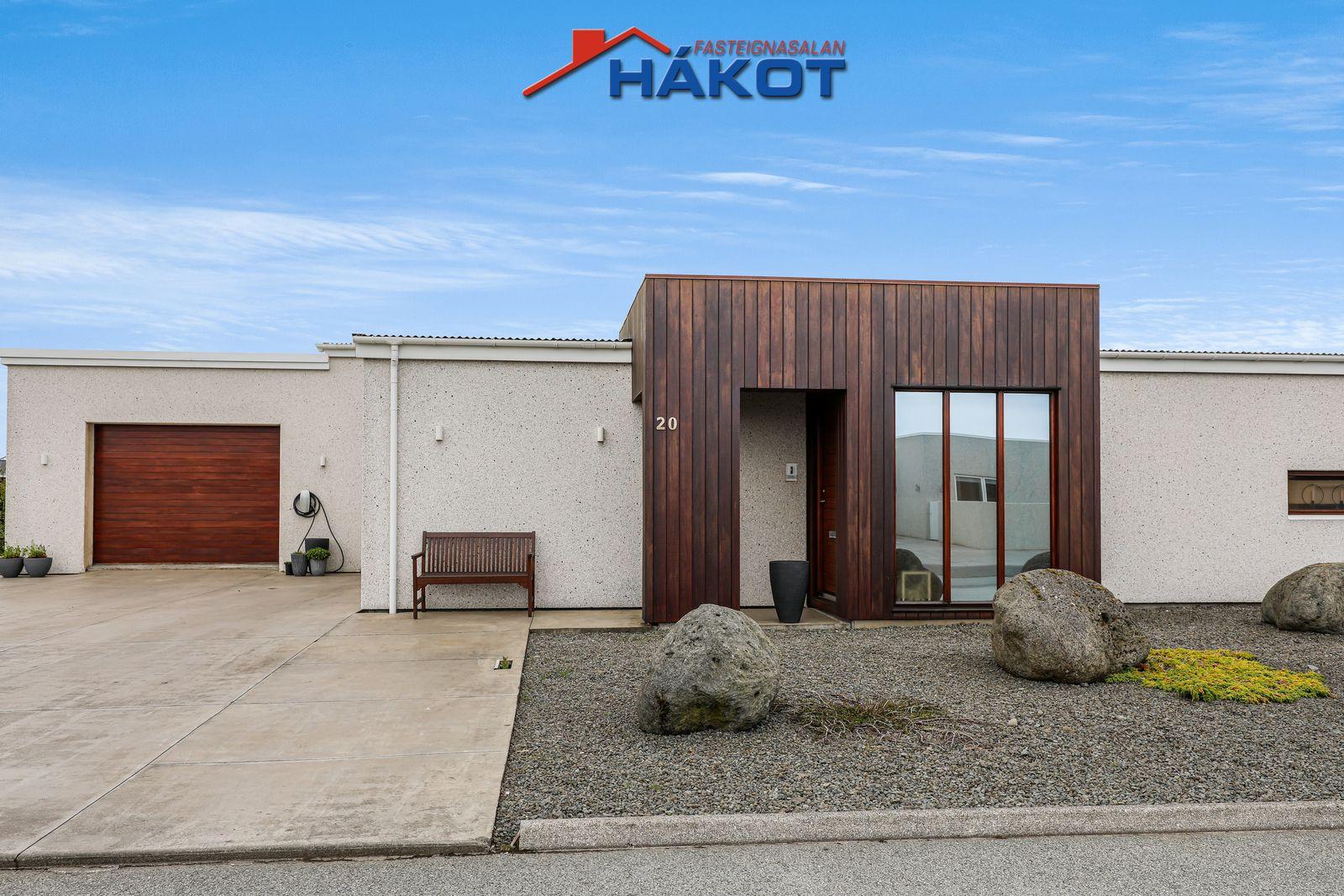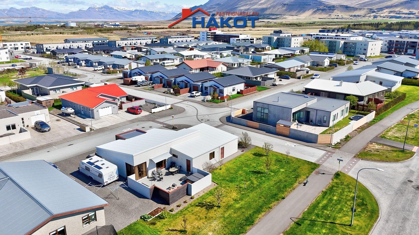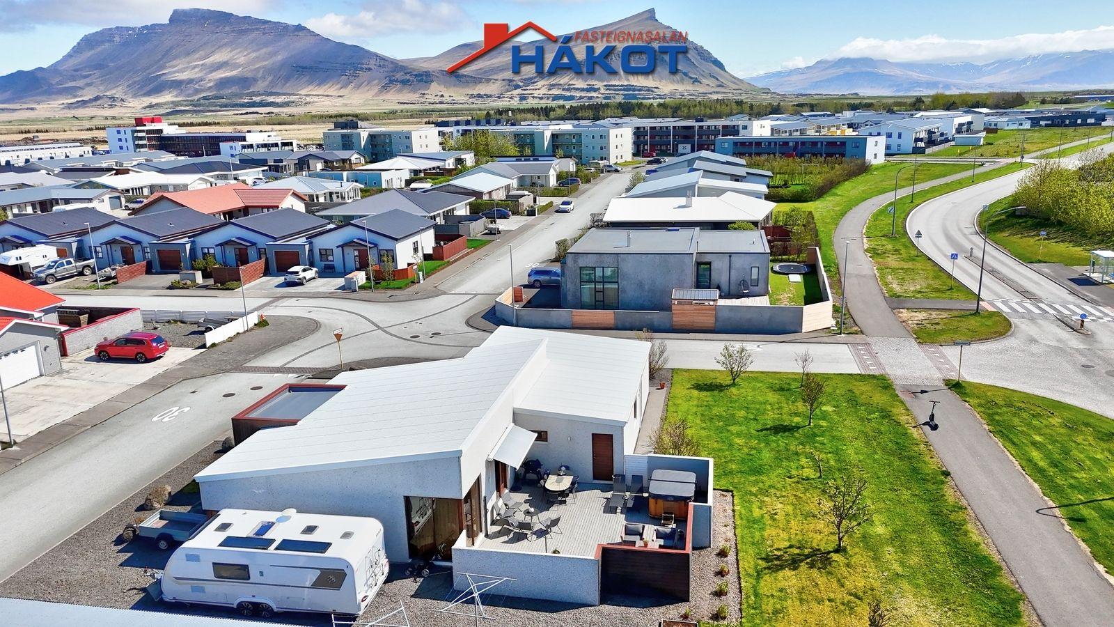 ANNAÐ: Gólfhiti með stýringu. Hátt til lofts. Stór verönd m/heitum pott. Steypt innkeyrsla (hiti í hluta). Hús úr forsteyptum einingum. Hallogenlýsing.
