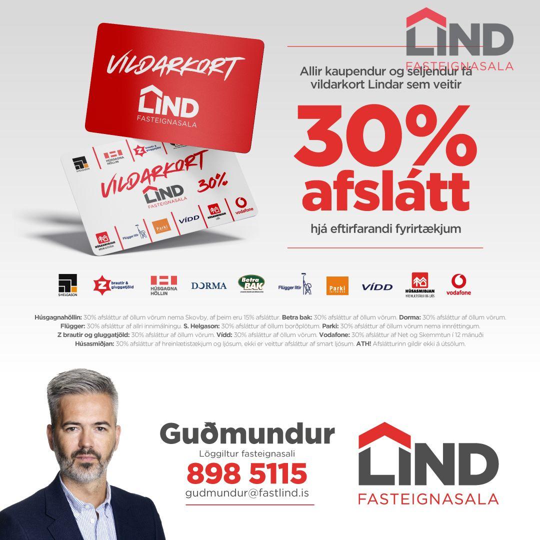 Við vekjum sérstaka athygli á því að allir kaupendur hjá Lind fasteignasölu fá Vildarkort Lindar sem veitir 30% afslátt hjá samstarfsaðilum okkar, en þeir eru: