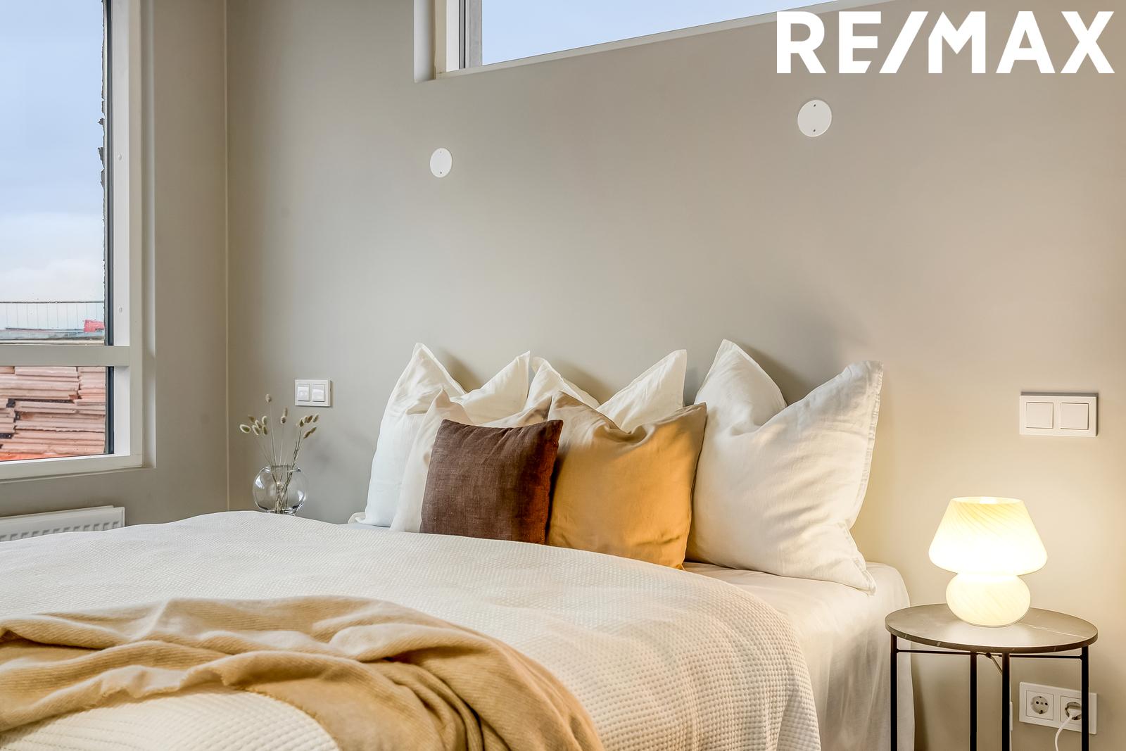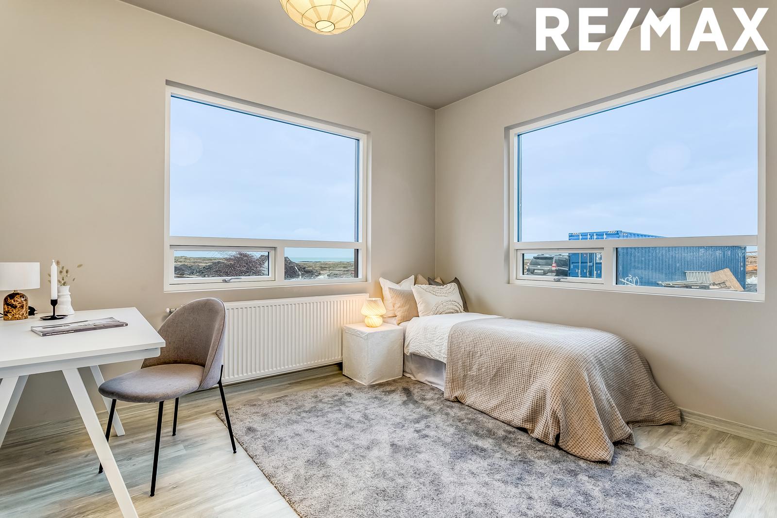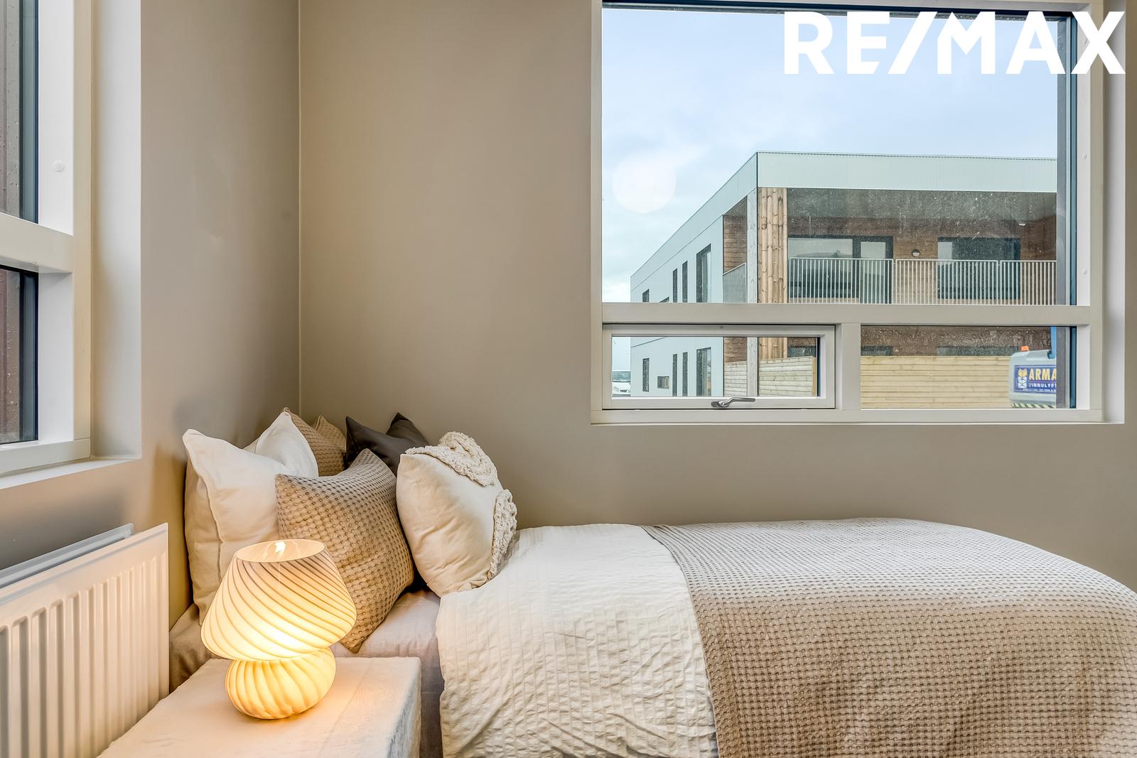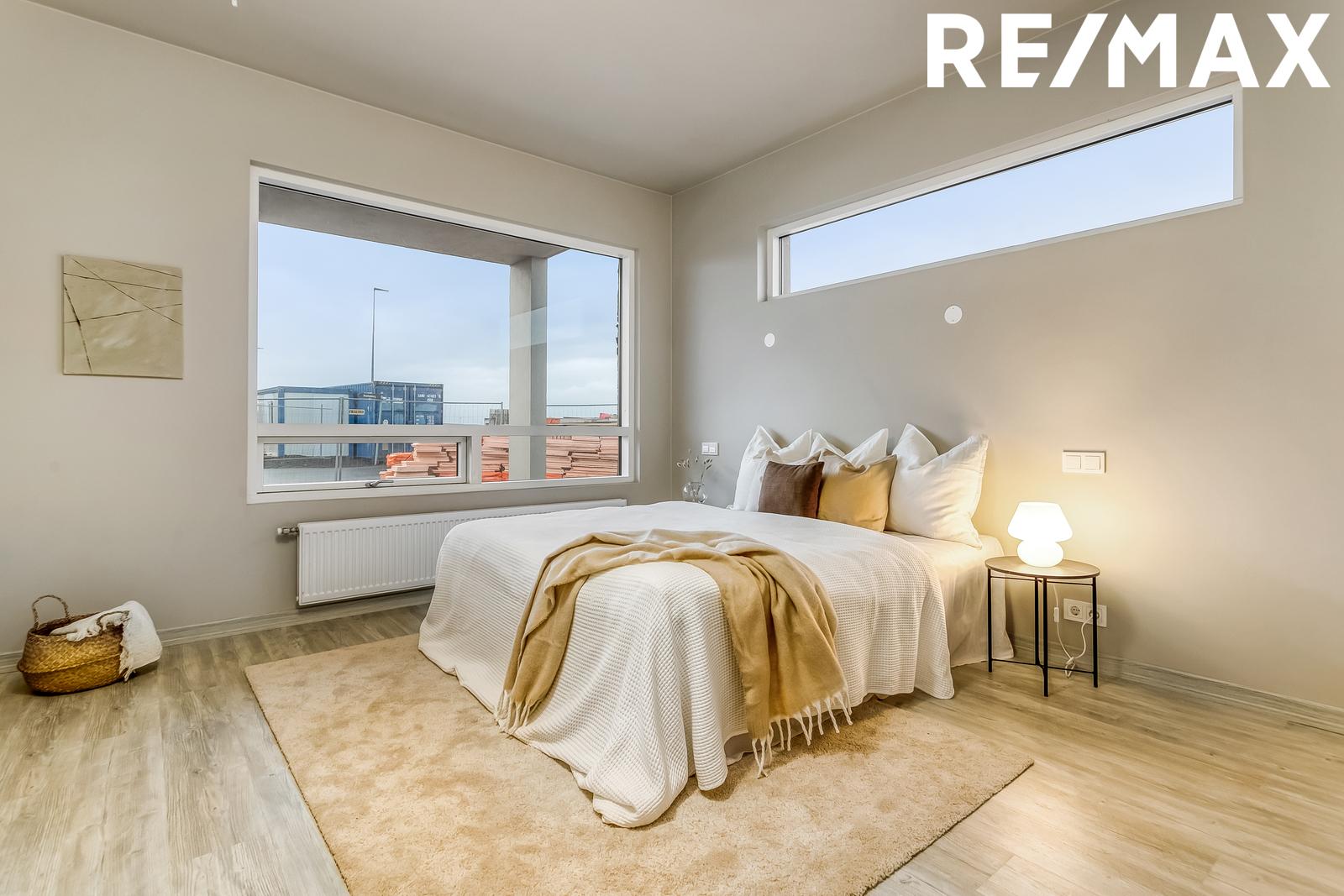 Íbúðirnar eru fjögurra herbergja, allar með stórum gluggum sem gefa mikla birtu. Íbúðirnar eru einnig allar með sér inngangi og íbúðum á neðri hæð fylgir sérafnotareitur en góðar svalir íbúðum efri hæðar. Allar íbúðir eru með aukinni lofthæð, innfelldri lýsingu að hluta, fallegum innréttingum, fullbúnar með gólfefnum og málaðar í hinum vinsæla 1/4 HÖR frá Slippfélaginu sem gefur hlýja tóna. Íbúðir á efri hæð eru með enn meiri lofthæð sem nemur 3 metrum!
