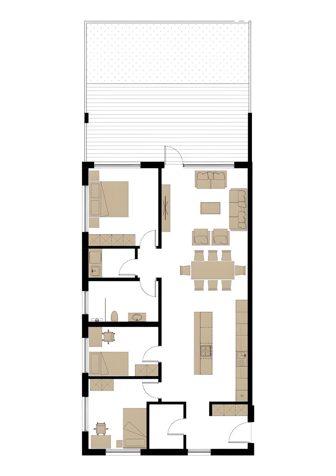 Íbúð 101 er 129.5 m2 endaíbúð með sérafnotareit, aukinni lofthæð og innfelldri lýsingu.