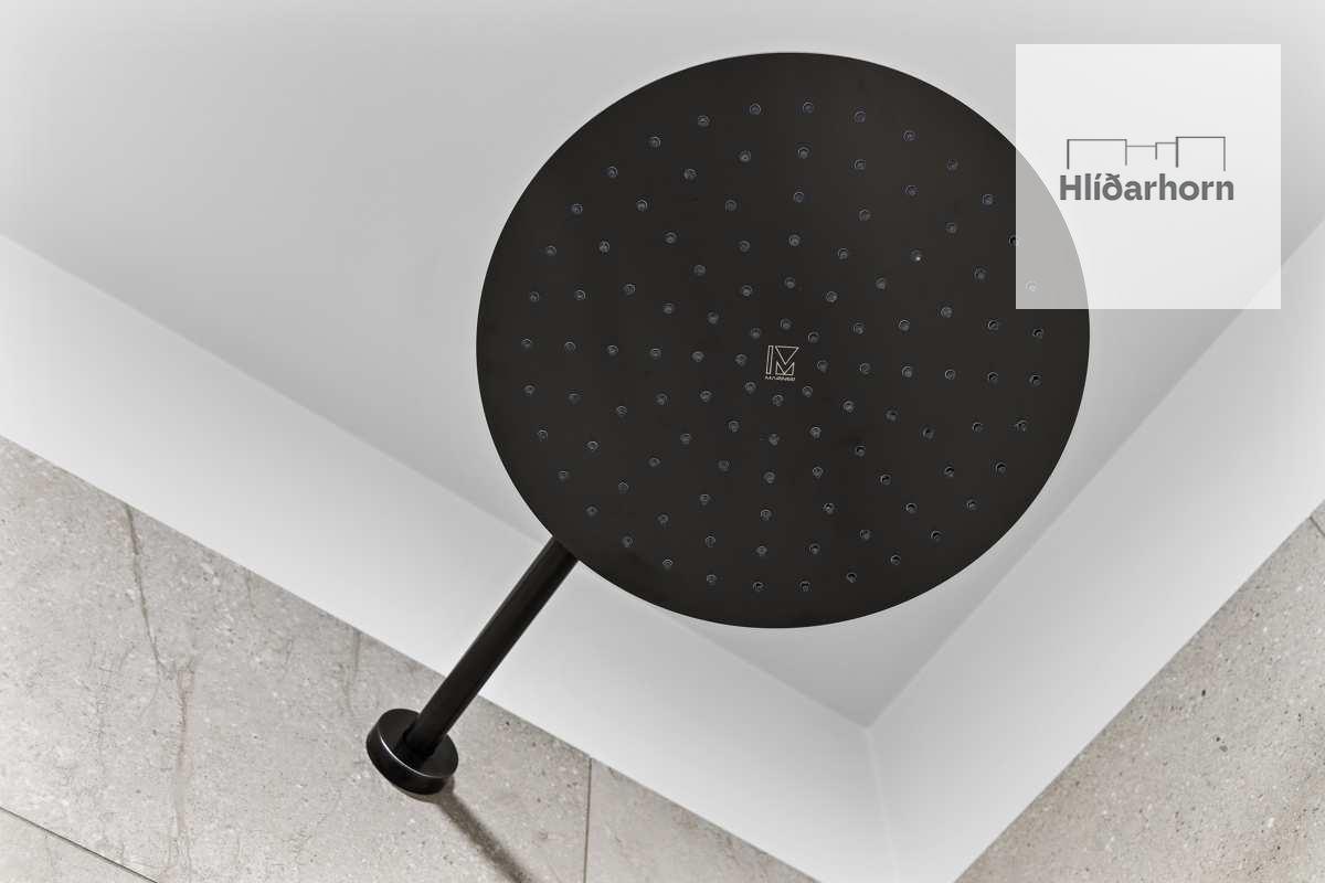 Nánari lýsing: Í anddyri eru góðir fataskápar. Gengið er beint inn í rúmgott og skemmtilegt alrými, eldhús og stofa/borðstofa með útgengi á tvennar svalir, aðrar í suður. Svarbrún eldhúsinnrétting með viðaráferð, svartur quartz-steinn á borðum og milli skápa og hágæða ítölsk blöndunartæki úr byssubláu stáli. Öll eldhúsraftæki af hæsta gæðaflokki. Innbyggður ísskápur og uppþvottavél. Rúmgott hjónaherbergi með góðum skápum. Svefnherbergi með fataskáp. Baðherbergi er með “walk-in” sturtu með hertu gleri, handklæðaofni og upphengdu salerni. Leirljósar steinflísar á gólfi og veggjum, svarbrún innrétting með viðaráferð og speglaskápur. Blöndunartæki á baði úr byssybláu stáli. Innbyggð blöndunartæki í sturtu. Þvottaherbergi er með ljósri innréttingu, leirljósum gólfflísum og vaski. Sérgeymsla íbúðar í kjallara er merkt 0001. Í kjallara Hlíðarhorns eru sameiginlegar hjóla- og vagnageymslur og bílakjallari með fyrirkomulagi samnýtingar þar sem íbúar munu hafa forgang.