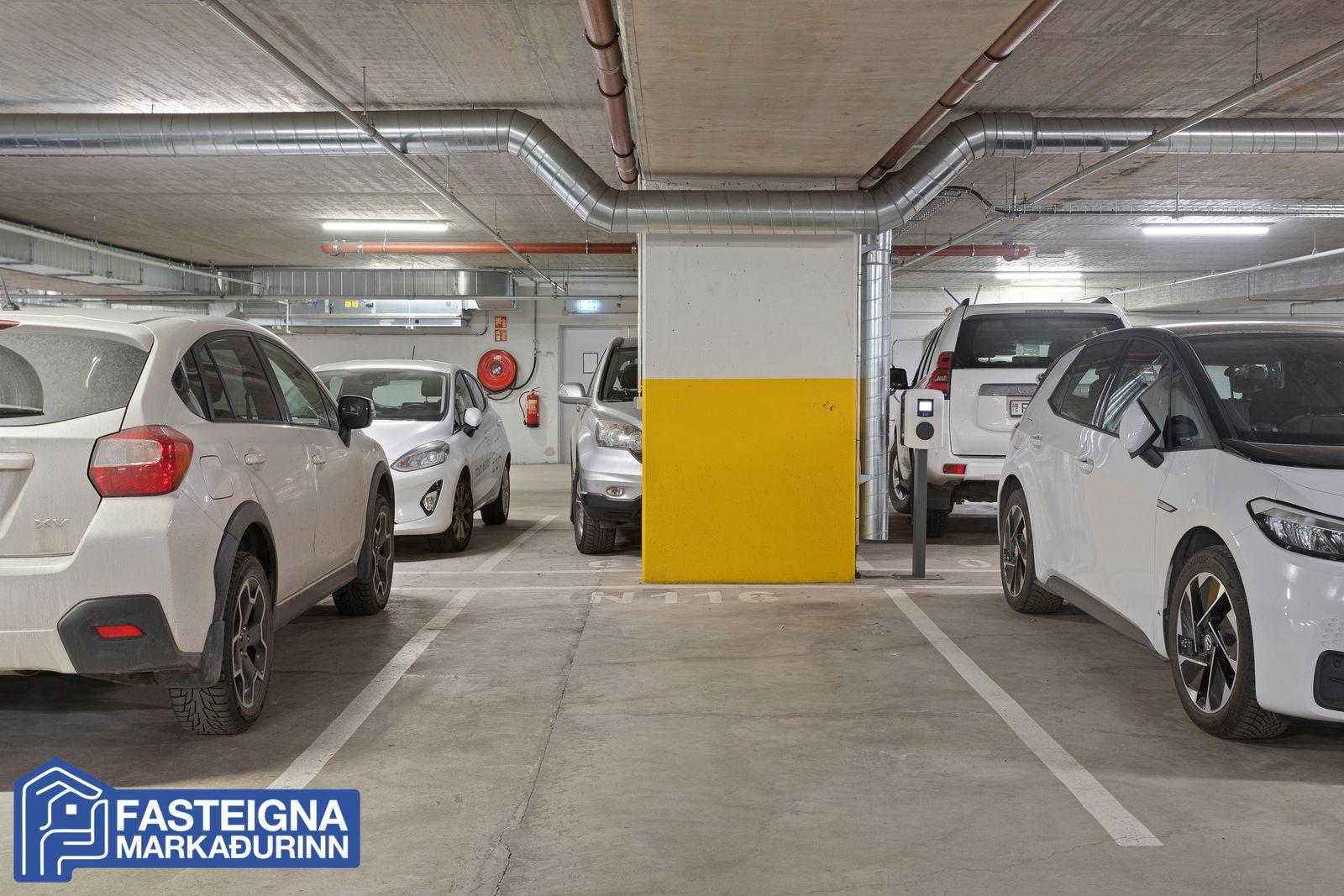 Í kjallara hússins eru:Sér bílastæði í lokaðri og upphitaðri bílageymslu merkt 05N116.