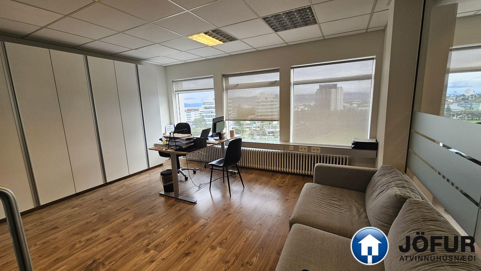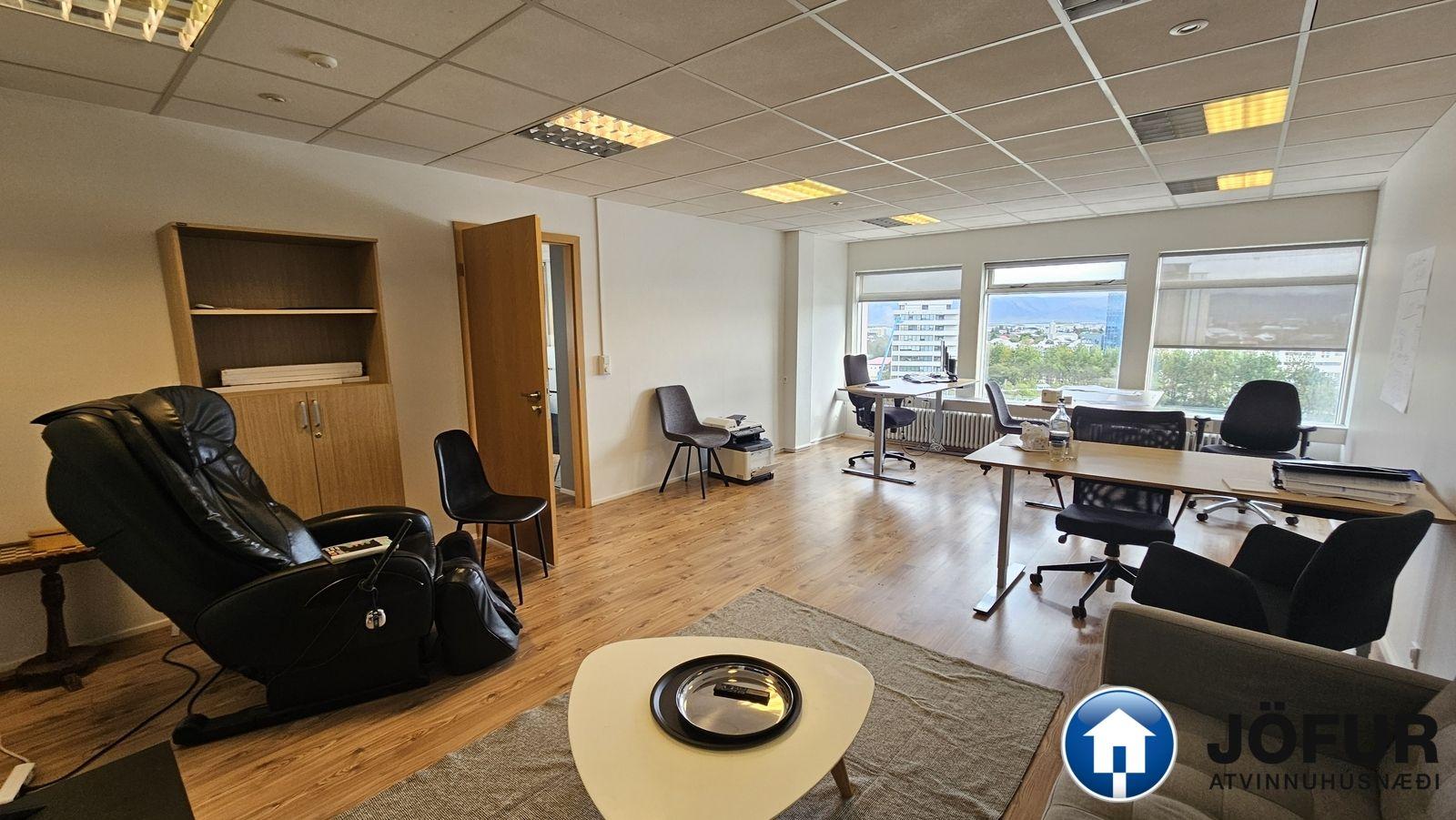 Til leigu 190 m² gott og bjart skrifstofuhúsnæði að meðtalinni sameign á 5.h. við Bolholt 4. Laust strax. Skiptist upp í opið rými/ hol, 3 lokaðar skrifstofur þ.a. ein stór, eitt fundarherbergi og kaffistofu. Á gólfum er parket. Glerveggir eru til staðar sem veita rýminu skemmtilegt og bjart yfirbragð. Snyrtingar eru í sameign á hæðinni. Lyfta er í húsinu. Glæsilegt útsýni í átt til Esju og sjávar. VSK leggst ekki við leigufjárhæðina. Lyfta.