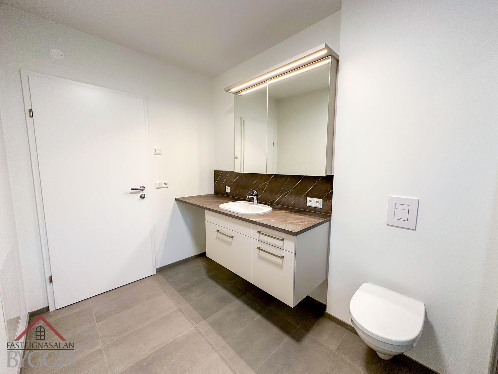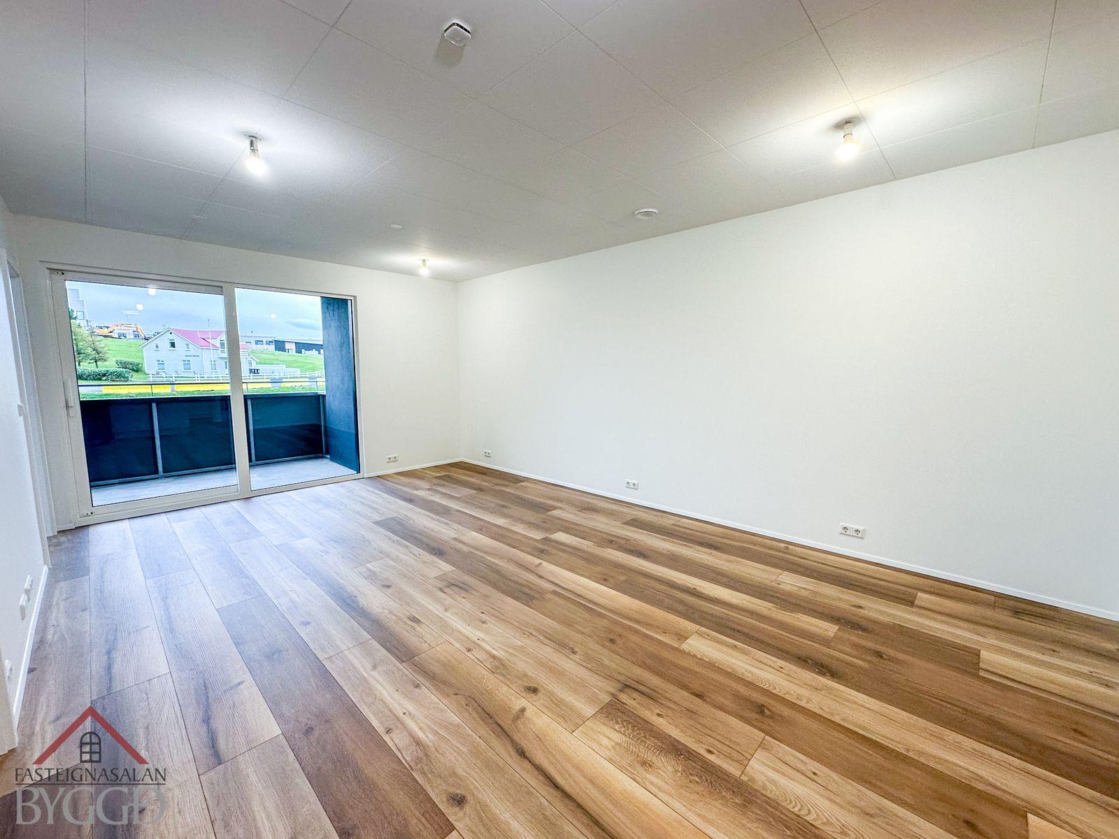 Ný glæsileg þriggja herbergja íbúð á 3. hæð í fjölbýlishúsi með lyftu, svalir snúa til norðurs. Glæsilegt útsýni er úr eigninni.