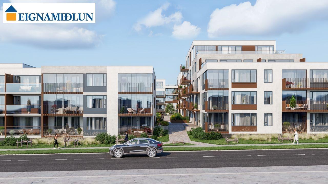 INNRÉTTINGAR: Eldhúsinnréttingar eru sérsmíðaðar frá Selós. Skápar eru úr vönduðu stitsterku melamin efni. Vönduð heimilistæki eru í íbúðum sem eru frá AEG. Kæli-/frystiskápur og uppþvottavél eru innbyggð í innréttinguna og spanhelluborð. Dekton – Rem steinborðplötur eru í öllum eldhúsum og Silestone – Nolita steinborðplötur eru á böðum. Gólfhiti er í gólfi baðherbergis auk handklæðaofns. Bílastæði í kjallara fylgja öllum íbúðum og möguleiki er á að kaupa viðbótarstæði.