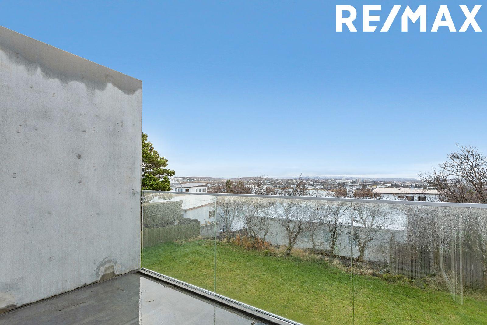 Svalir eru með glerhandriði og snúa í suðurátt.