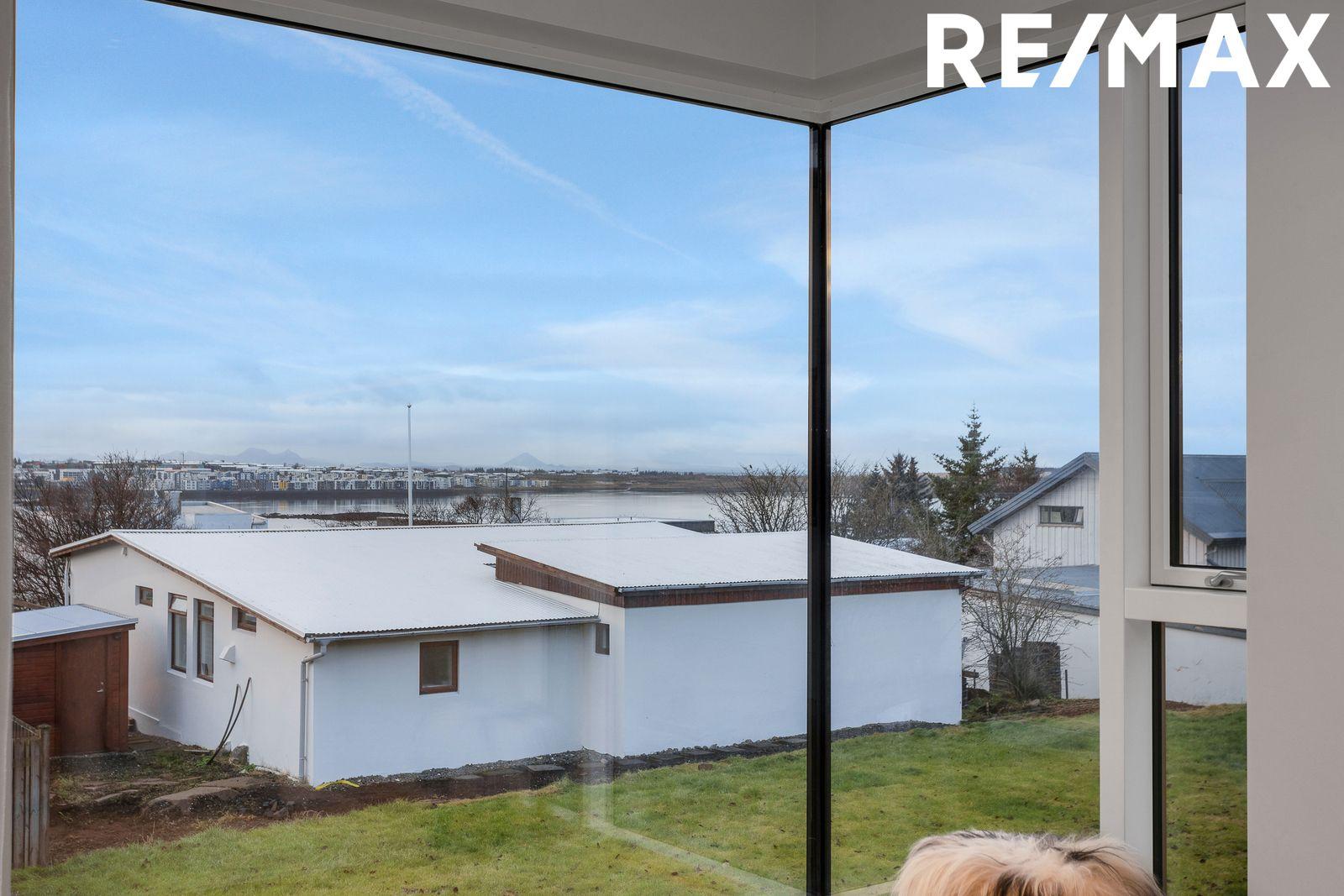 Efri hæð:Stofan og eldhúsið er í opnu alrými. Fallegt útsýni yfir byggð og til sjávar. Gólfsíður gluggi og horngluggi sem gefa eigninni mikinn sjarma (enginn gluggapóstur í horninu).