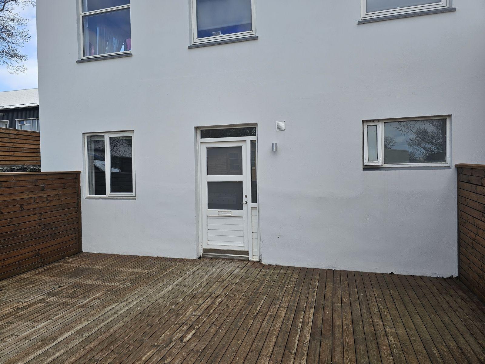 Nánari lýsing: Aðkoma að íbúðinni er frá Þorsteinsgötu, gengið er frá bílaplani niður á sólpall. Íbúðin skiptist í anddyri, baðherbergi, breiðan gang sem á eru 2 herbergi og eldhús, þar innaf er stofa og borðstofa.