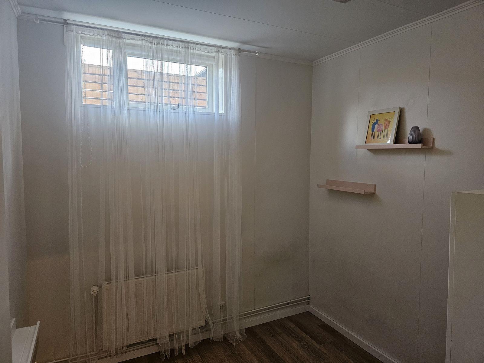 Anddyri: Flísar á gólfi. Baðherbergi: Með innréttingu, salerni, og sturtuklefa. Flísar á gólfi og veggjum í sturtu. Tengi fyrir þvottavél og þurrkara. Eldhús: Ágæt eldhúsinnrétting og nýtt parket á gólfum. með öllum tækjum, innbyggð uppþvottavél. Stofa og borðstofa: Parket á gólfum. Svefnherbergi: Parket á gólfum, fataskápur í hjónaherbergi. Annað herbergið er skráð sem geymsla.