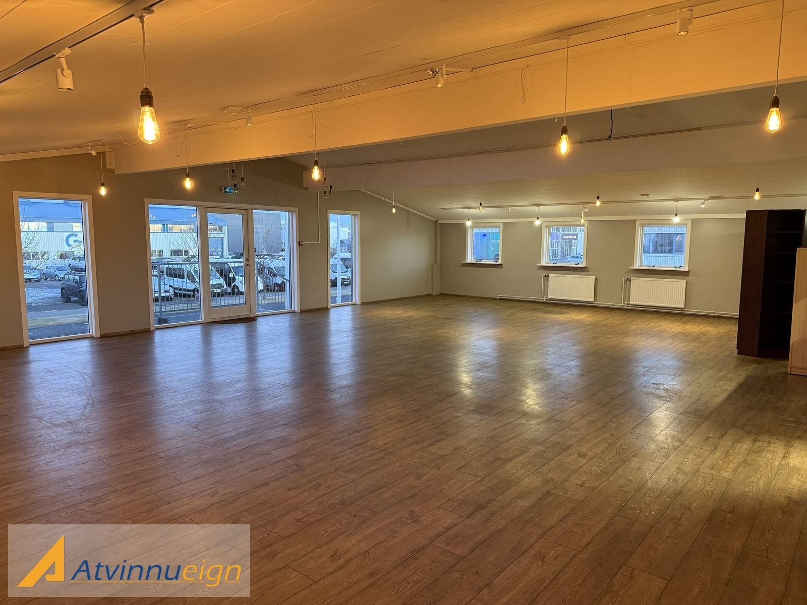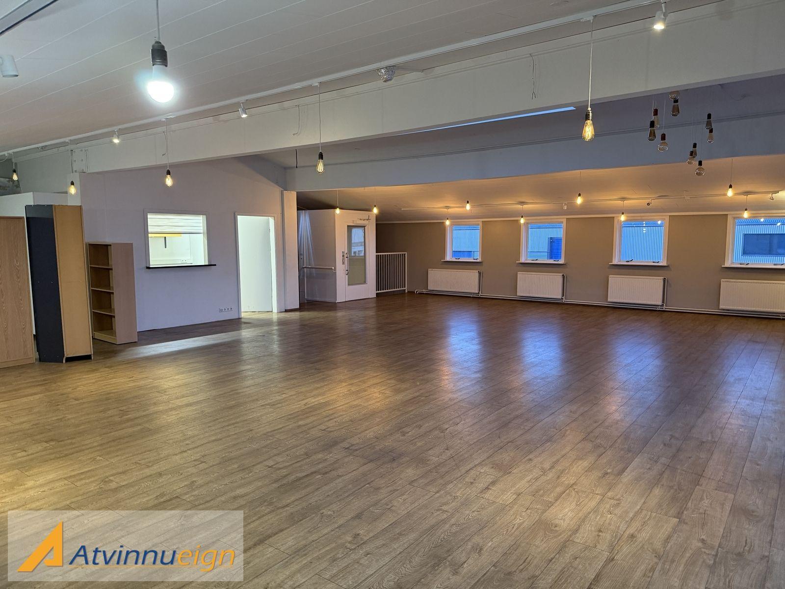Efri hæðin er að mestu einn stór salur, en áður var það nýtt undir veislusal. Einnig er eldhús á hæðinni. Á jarðhæð eru þrjú salerni. Lyfta er til staðar milli hæða. Laust strax. VSK bætist ekki við leiguverð.