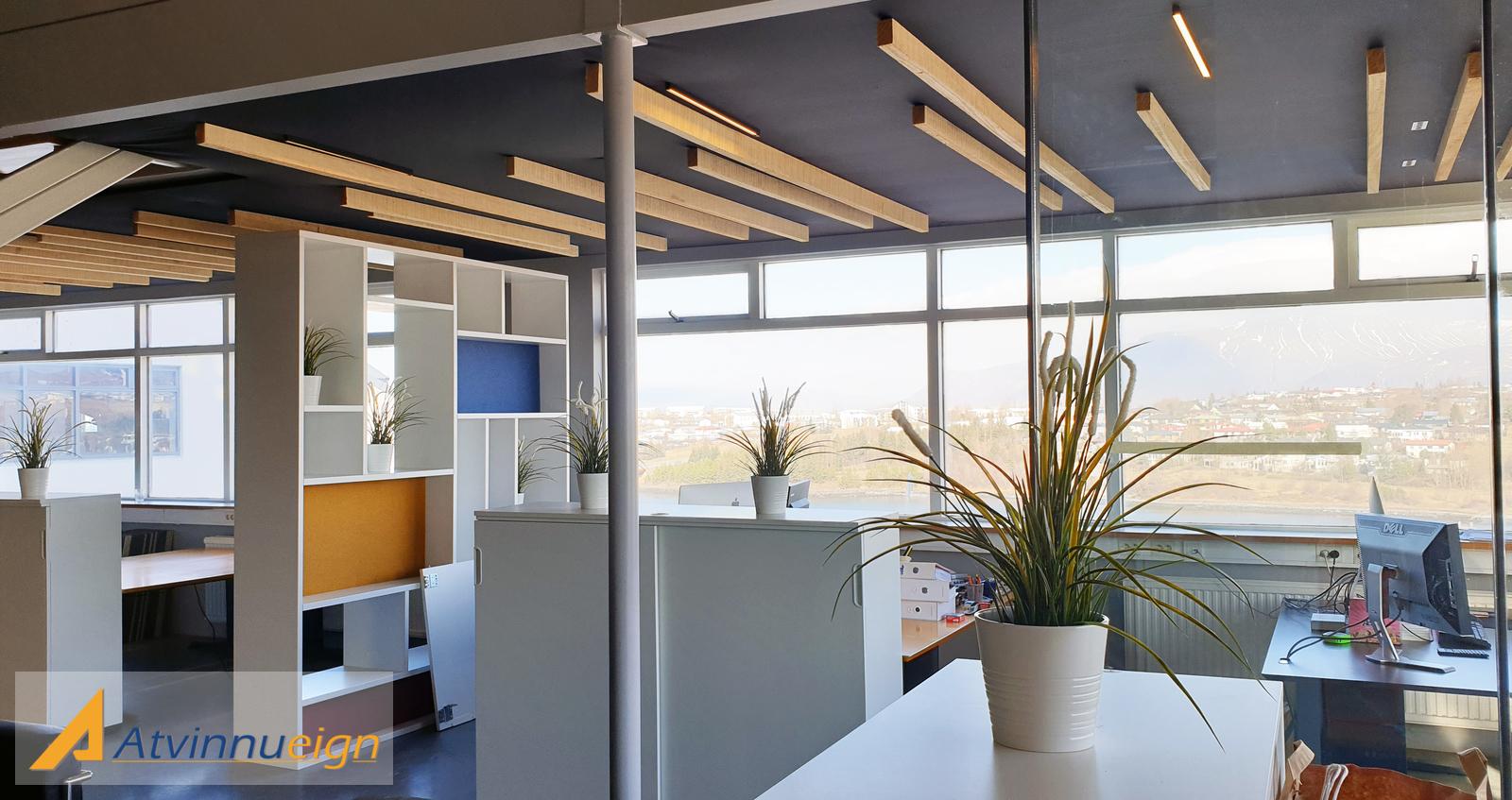 Atvinnueign kynnir til leigu: skrifborðsaðstöðu í opnu rými með glæsilegu útsýni á 2. hæð í endurgerðu skrifstofurými að Stórhöfða 17 við Gullinbrú í Reykjavík – frábært útsýni til Esjunnar yfir Grafarvog og Grafarholt.
