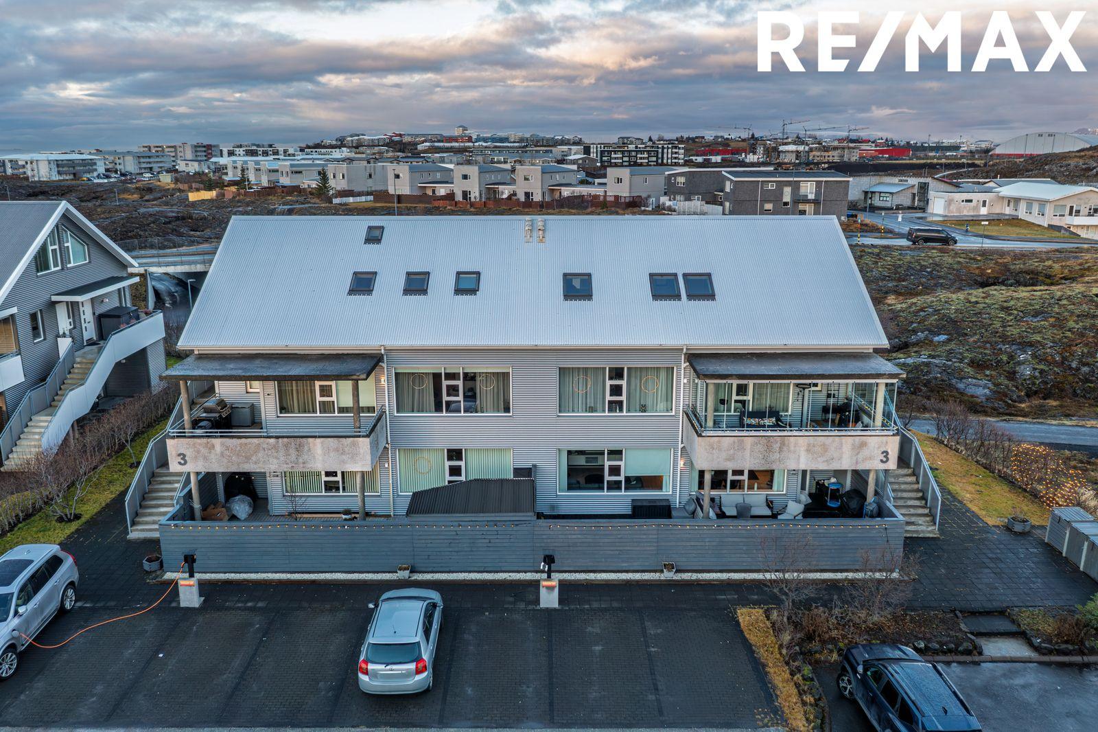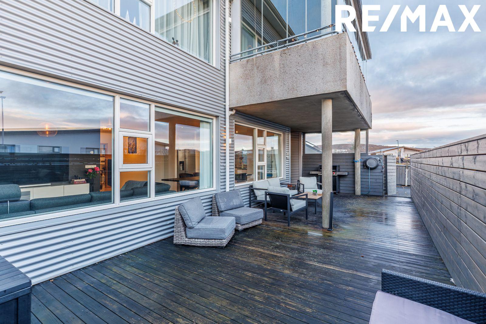 Lóð: Sameiginleg frágengin lóð. Tyrft grasflöt í kringum húsið. Við íbúðina er rúmgóður og sólríkur pallur sem snýr til suðurs. Handrið pallsins var endurnýjað árið 2023 og jafnframt settur upp stór og vandaður timbur og gler - skjólveggur sem býr til notalegt og skjólsælt útisvæði. Þetta gerir grill- og útiveruaðstöðu íbúðarinnar einstaklega góða. Á pallinum er rennandi vatn, tengt blöndunartæki í eldhúsi, sem gerir allt viðhaldog bílaþvott mun þægilegri. Þá hefur nýlega verið komið upp rafmagnsinnstungu sérstaklega hannaðri fyrir háþrýstisdælu og jólaskraut,