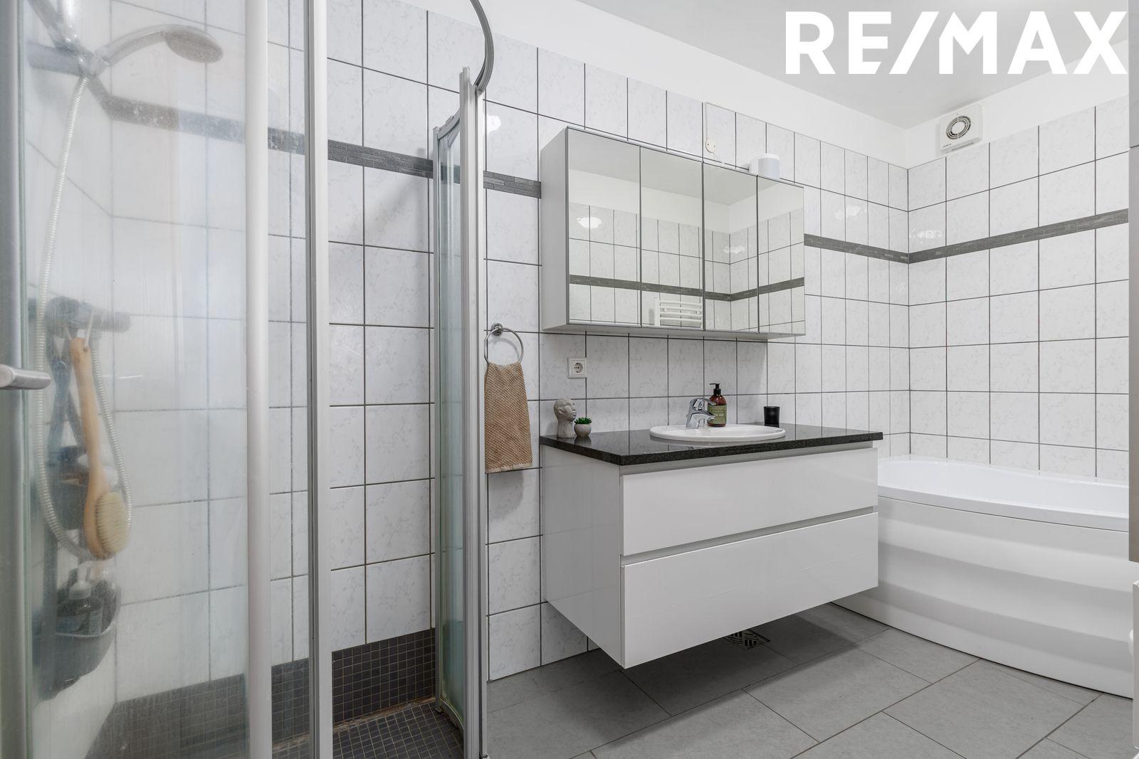 Baðherbergi: Flísalagt í hólf og gólf. Hornbaðkar og sturtuklefi. Hvít innrétting með efri og neðri skápum og handlaug. Granít borðplata er í innréttingu. Upphengt salerni og handklæðaofn.