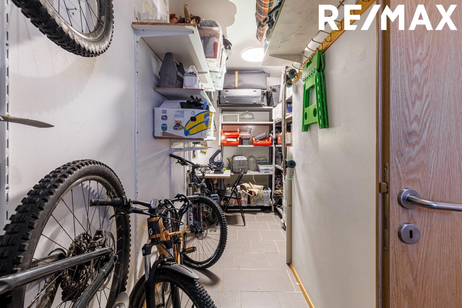 Geymsla: Flísar á gólfi. Inngengt er úr forstofu og einni er hurð inn í rýmið við hliðina á útidyrahurð inn í íbúðina. Góðar hillur eru í rýminu og núverandi eigendur eru með lausar hillur einnig sem veita gott geymslupláss.