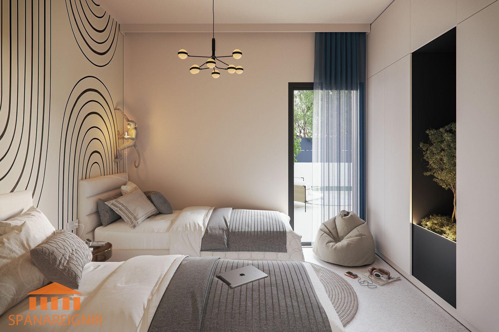 Þrjú svefnherbergi og tvö baðherbergi.