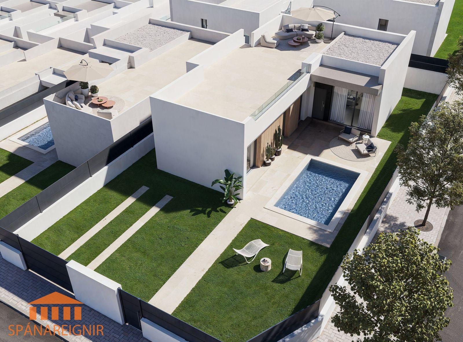 Vel hönnuð og flott einbýlishús á einni hæð á góðum stað í San Miguel de Salinas, skemmtilegum spænskum bæ með sál og sjarma. Ca. 50 mín. akstur í suður frá Alicante flugvelli. Þrjú svefnherbergi og tvö baðherbergi. Göngufæri í miðbæ San Miguel de Salinas, þar sem er að finna fjölbreytt úrval af verslunum og veitingastöðum. Fjölmargir góðir golfvellir á svæðinu; Las Ramblas, Campoamor, Villamartin, Las Colinas, Vistabella, La Finca og ótal fleiri.