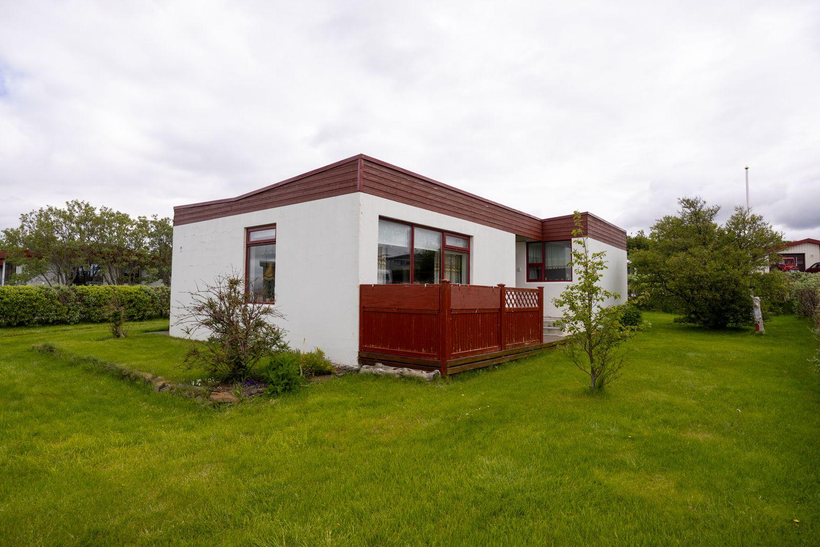 Nánari lýsing: Gengið er í forstofu, þar innaf er hol, úr holi er gengið í svefnherbergisálmu, eldhús og stofu. Gengt er úr holi út á baklóð. Þar er steypt stétt og sólpallur. Úr eldhúsi gengið í þvottahús og geymsla þar innaf. Gengið er úr þvotthúsi út á sólpall með skjólveggjum.