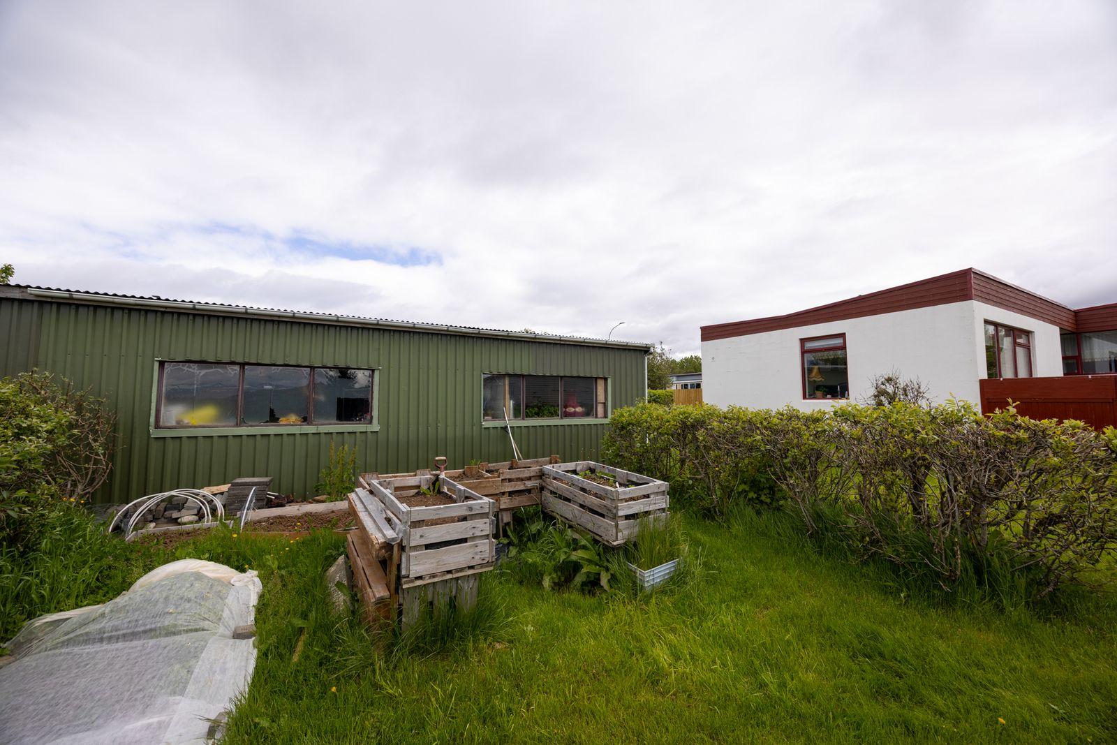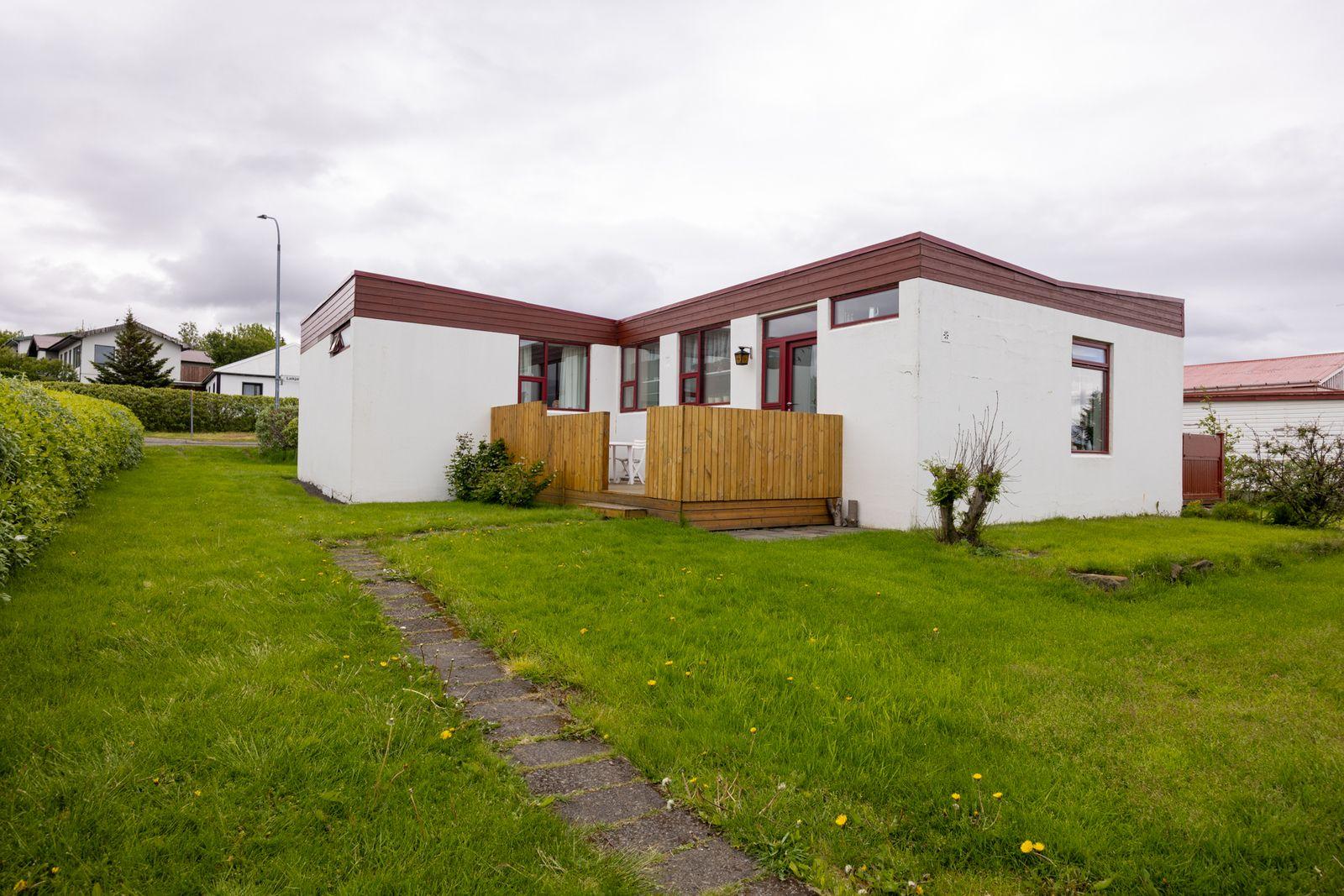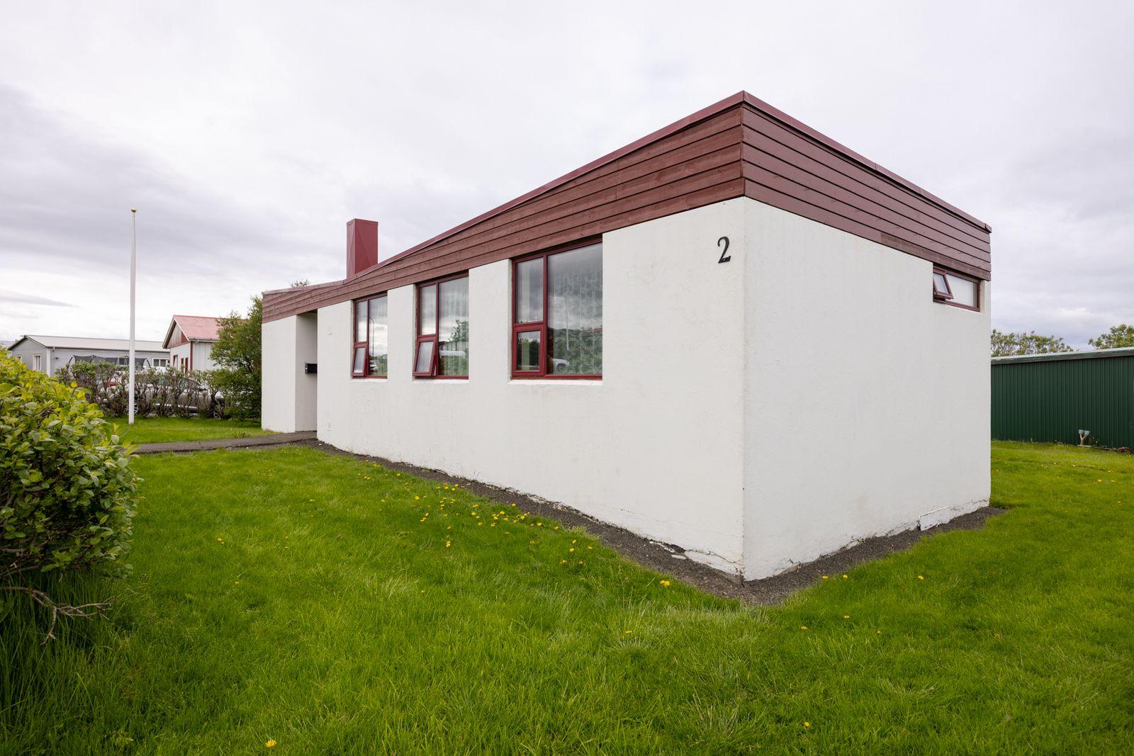 Um er að ræða steinsteypt einbýlishús á einni hæð ásamt bílskúr. Húsið var byggt 1965 og er 136.2 fm að stærð og stakstæður bílskúr 69.6 fm samkvæmt skráningu HMS. Aðkoma að húsinu er snyrtileg og frágengin. Hitaveita er á svæðinu.