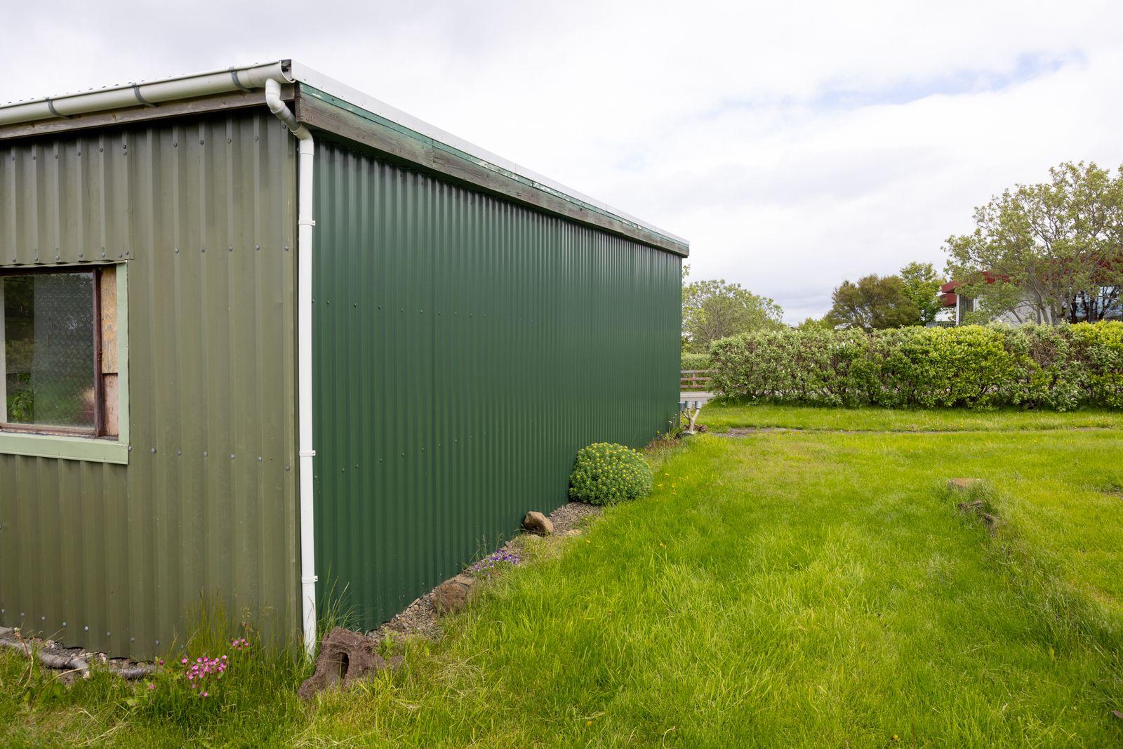 Bílskúr stakstæður en í sameign með húsinu við hliðina að Brekkuhvammi 4. Eignarhlutur Lækjarhvamms 2 er 2/3 af heild. Timburhús klætt með lituðu járni. Einangraður og epoxy málning á gólfum. Bílskúrnum er skipt niður í 3 hólf.