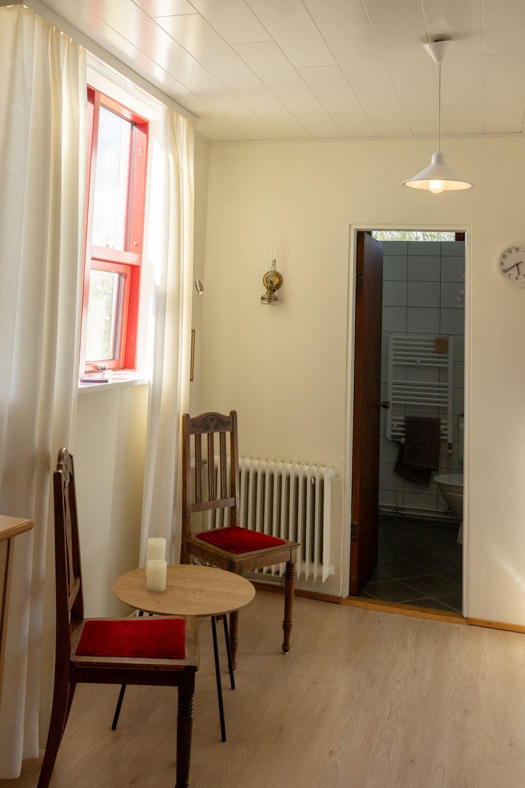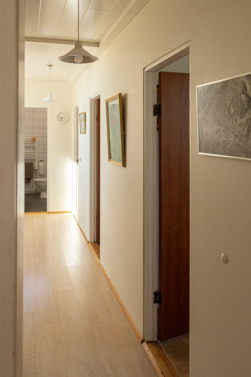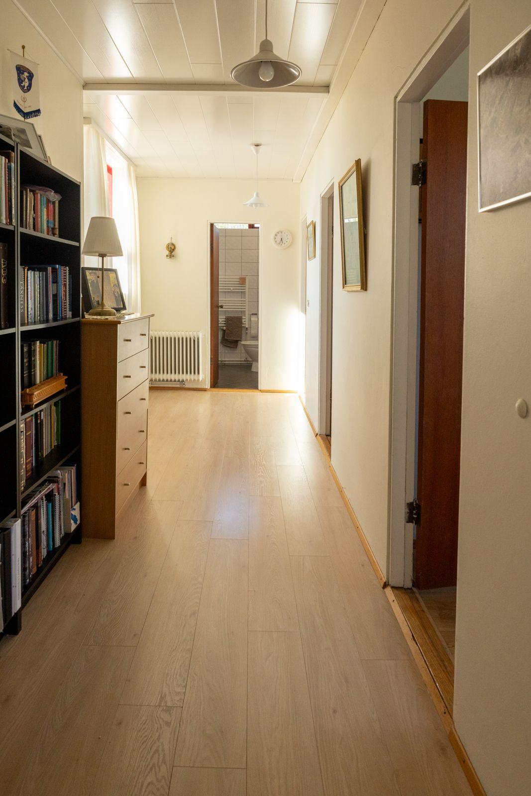 Forstofa flísar á gólfi og fataskápur. Svefnherbergi eru 4 þar af 3 á svefnálmu. Tvö herbergi hafa verið sameinuð þar en auðvelt að færa til fyrra horfs ef þörf krefur. Parket á gólfum og nýlegur fataskápur í hjónaherbergi Baðherbergi flísar í hólf og gólf, salerni, innrétting og sturta. Eldhús nýlegur dúkur á gólfi, góð eldri innrétting. Uppþvottavél í innréttingu og ísskápur. Borðstofa er inn af eldhúsi samliggjandi við stofuna. Parket á gólfum Stofa parket á gólfum. Björt með góðum gluggum.