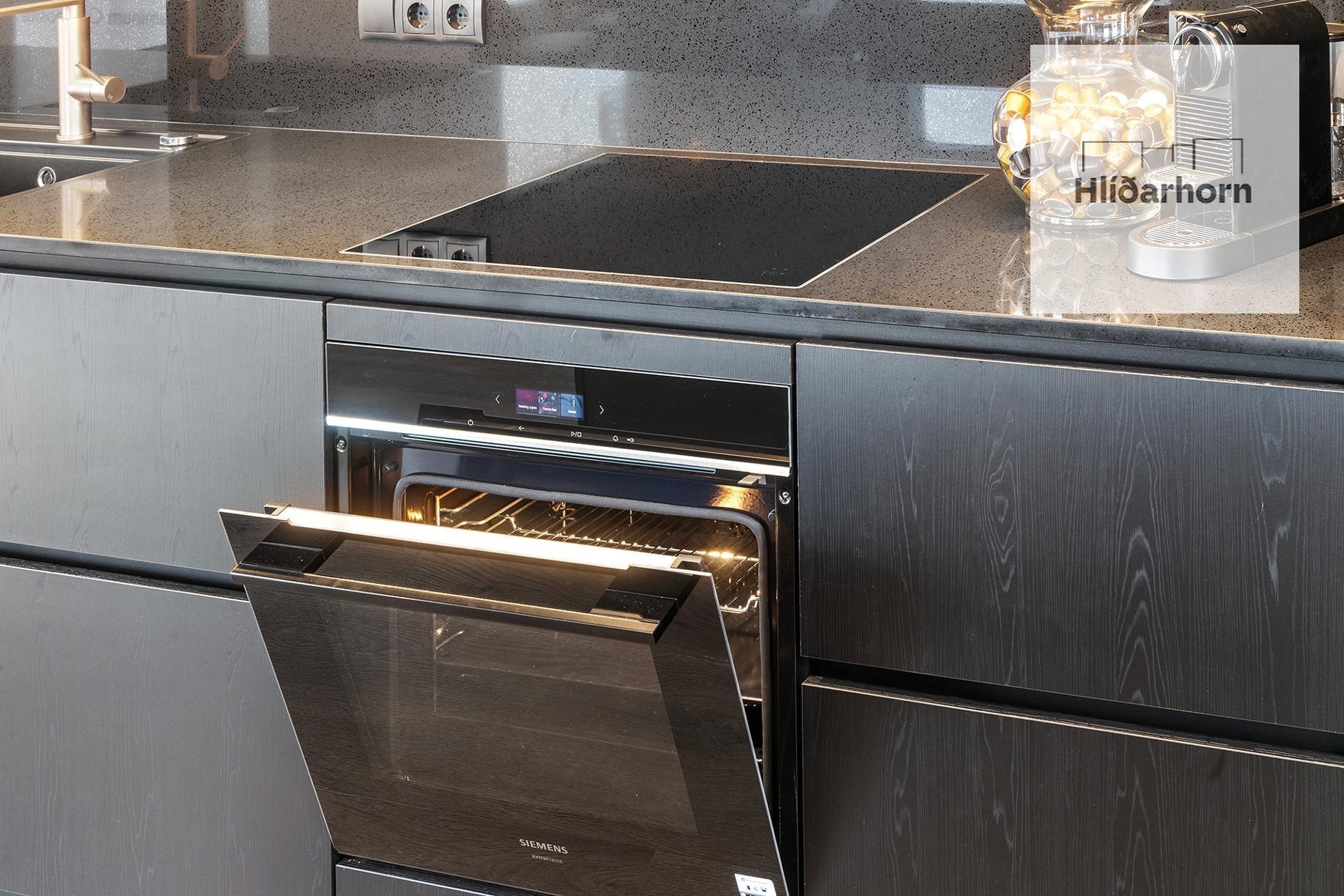 Virðuleg og vönduð 3ja herbergja rúmgóð horníbúð á 2. hæð. Birt stærð er 103,4 fm þar af 7,4 fm geymsla í kjallara. Íbúðin skiptist í anddyri, gang, eldhús með eyju og stofu/borðstofu í opnu rými með útgengi á svalir, 2 svefnherbergi og baðherbergi. Íbúðin afhendist með hágæða sérsmíðuðum innréttingum frá Nobilia/GKS, raftækjum frá Siemens og Witt í hæsta gæðaflokki, vönduðum ítölskum blöndunartækjum frá Mariner Rubinetterie, og sterku og vönduðu gólfefni frá Álfaborg. Íbúðin er útbúin sér loftræstikerfi með varmaendurvinnslu. Innréttingarþema íbúðar er Hlíð 2.