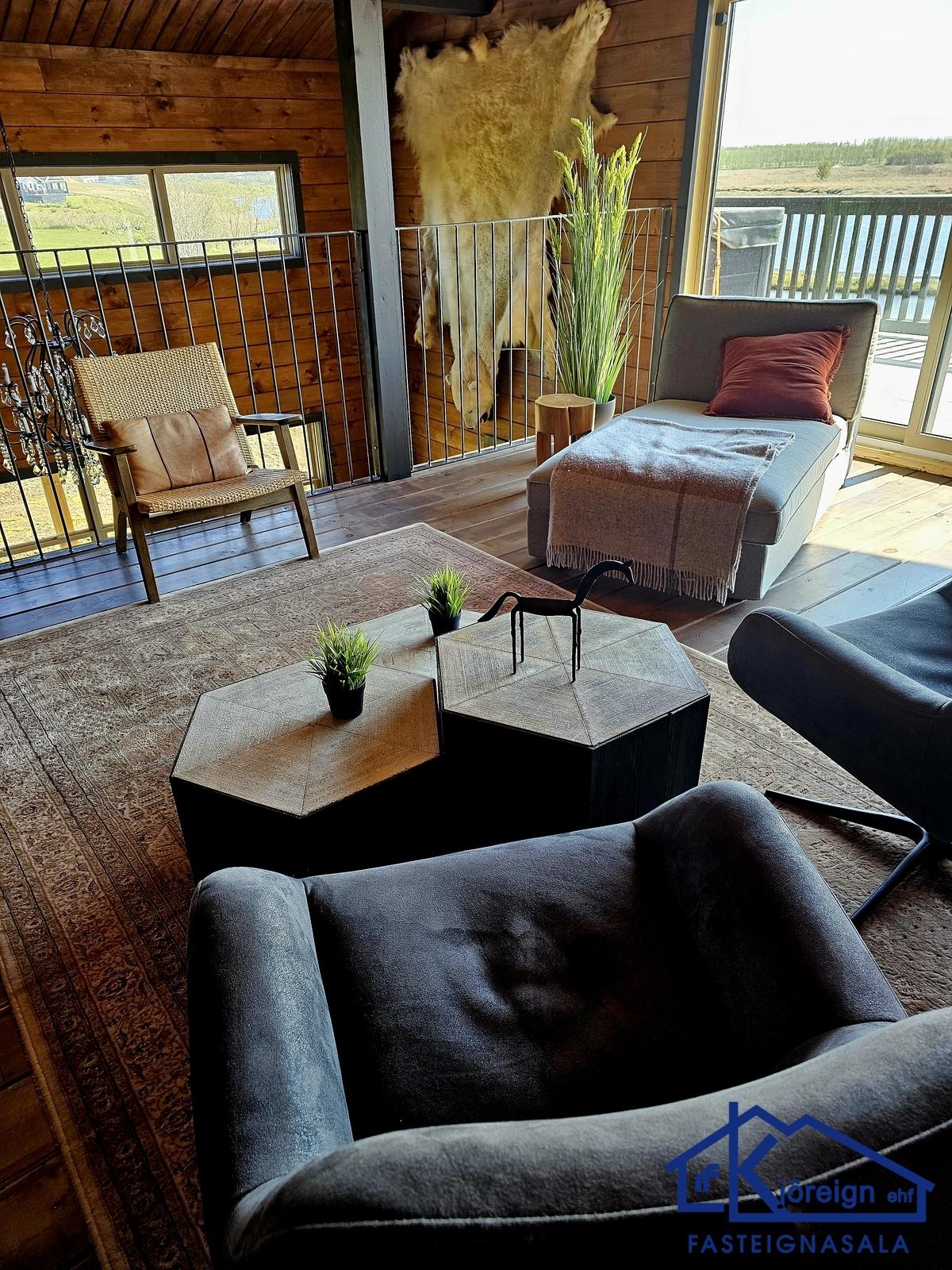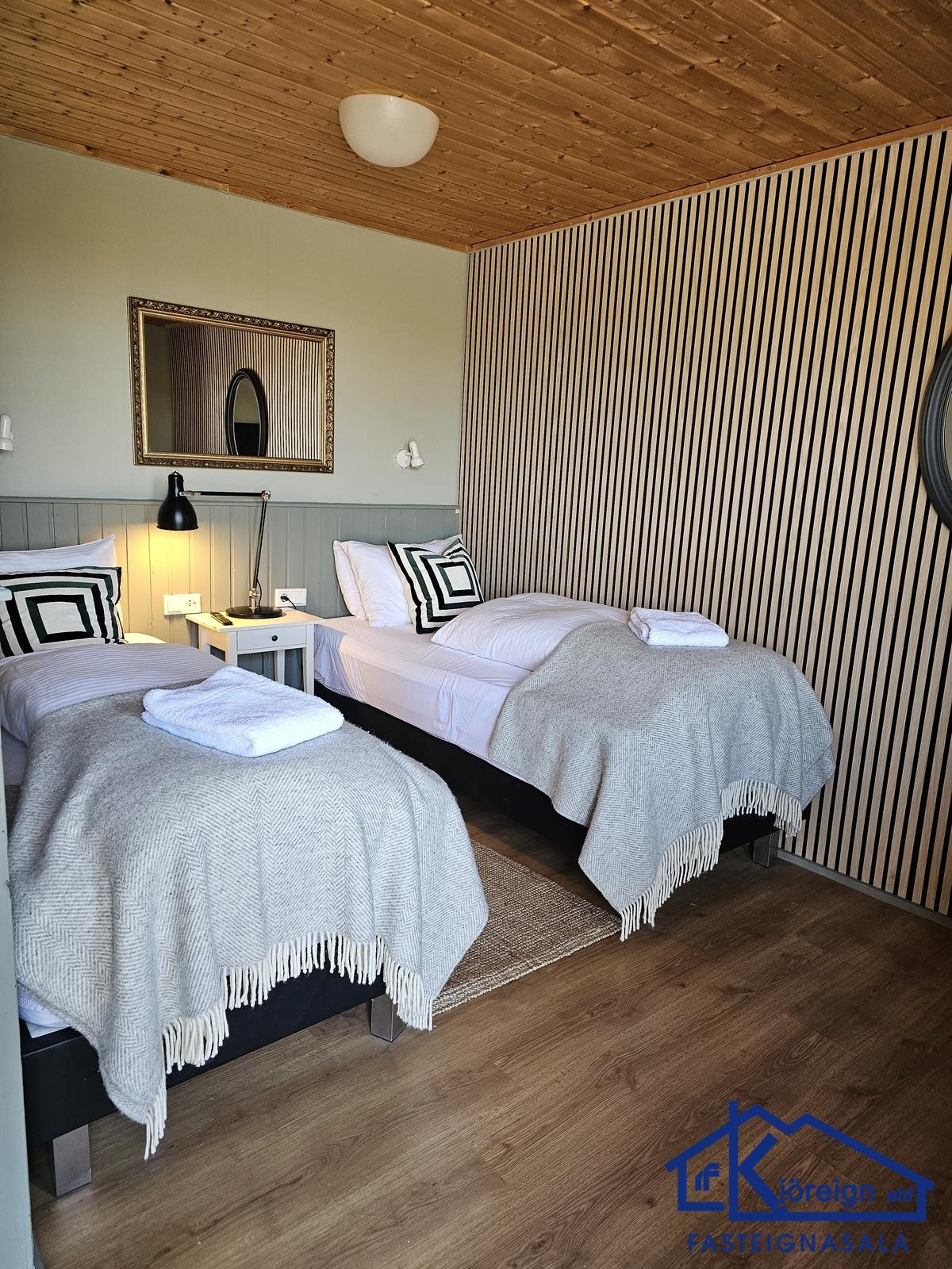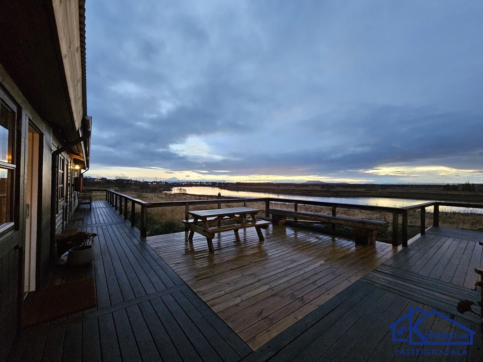 Kjöreign ehf., Ármúla 21, Reykjavík, sími 533-4040 kynnir fasteignir í ferðaþjónustu við Ytri-Rangá ásamt 5.083 fm. eignarlóð, skráning er veiðihús. Heildarstærð 3ja fasteigna er ca. 500 fm. Starfsemin er í fullum rekstri. Starfsmenn eru tveir. Staðsetning nánast við þjóðveg 1 eða ca. 80 km. frá Reykjavík. Samkvæmt deiliskipulagi er heimilt að auka byggingarmagn um ca. 300 fm. og auka gistirými fyrir allt að 60 gesti. Gistirými eru nú 17 auk matsalar og aðstöðu fyrir gesti. Einn heitur pottur á svölum. Tvær rafmagnshleðslustöðvar. Góð aðkoma og bílastæði. Öll leyfir eru til staðar. Vaxandi velta, góðar pantanir eru þegar komnar fyrir árið 2025. Húsakostur. Tvö hús af sömu stærð eða 119,5 fm hvort, byggingarár er 2004 og 2005. Milli húsanna er ný tengibygging (óskráð). Auk þess er hús á tveimur hæðum, byggt árið 2023, birt stærð er 238,2 fm. Húsið er vistlegt og íburðarmikið. Minni húsin eru á stálbitum. Allur búnaður í húsunum er til staðar og eru herbergin vistleg og með sér baðherbergjum.