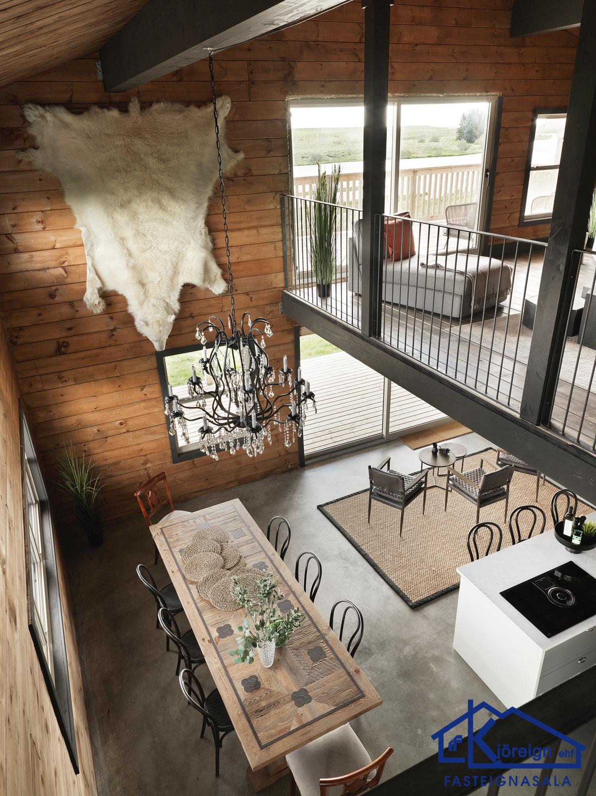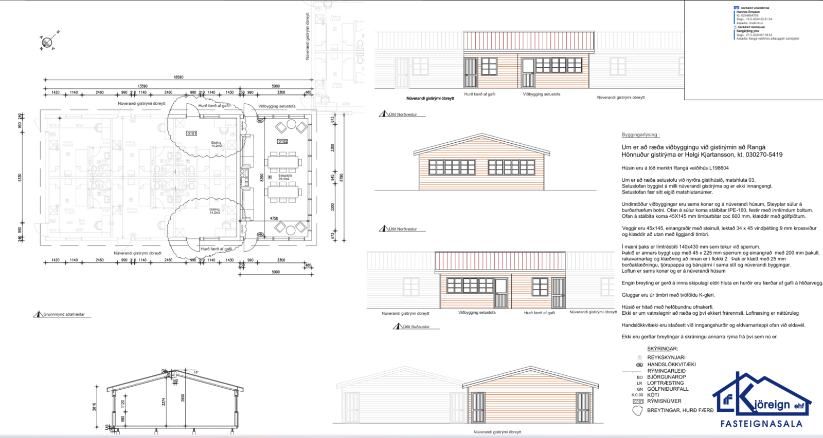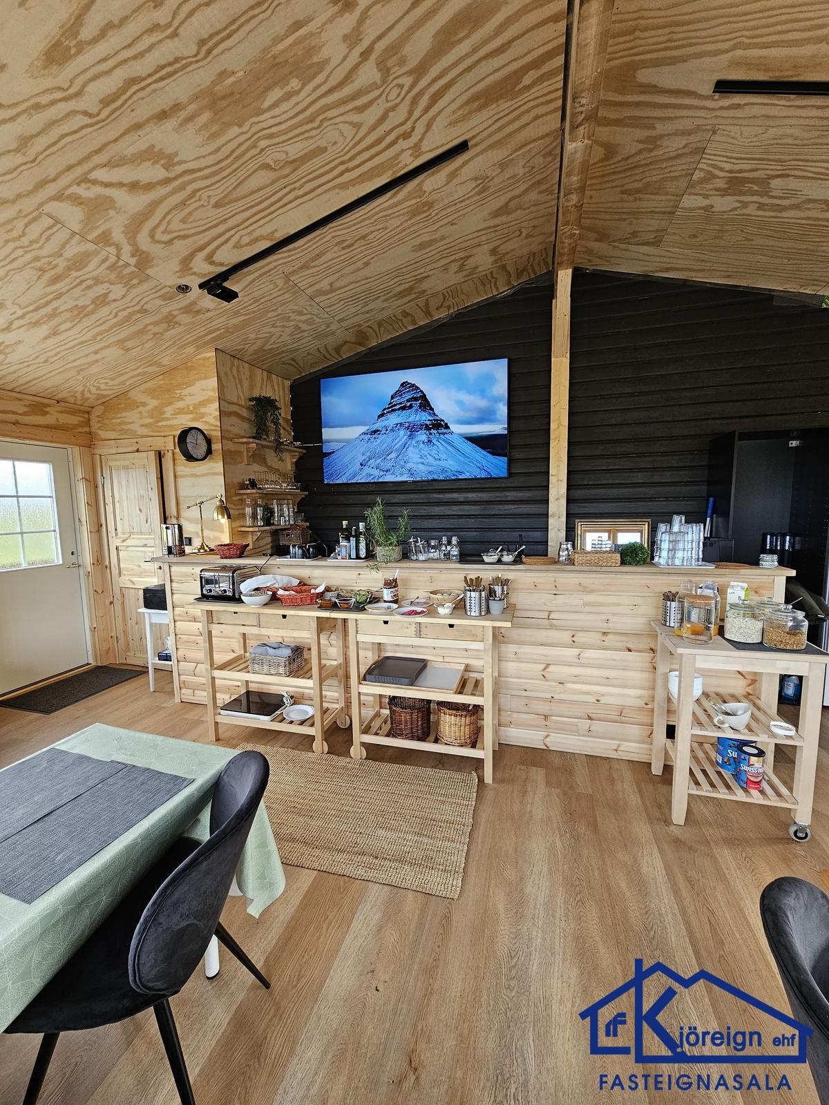 Kjöreign ehf., Ármúla 21, Reykjavík, sími 533-4040 kynnir fasteignir í ferðaþjónustu við Ytri-Rangá ásamt 5.083 fm. eignarlóð, skráning er veiðihús. Heildarstærð 3ja fasteigna er ca. 500 fm. Starfsemin er í fullum rekstri. Starfsmenn eru tveir. Staðsetning nánast við þjóðveg 1 eða ca. 80 km. frá Reykjavík. Samkvæmt deiliskipulagi er heimilt að auka byggingarmagn um ca. 300 fm. og auka gistirými fyrir allt að 60 gesti. Gistirými eru nú 17 auk matsalar og aðstöðu fyrir gesti. Einn heitur pottur á svölum. Tvær rafmagnshleðslustöðvar. Góð aðkoma og bílastæði. Öll leyfir eru til staðar. Vaxandi velta, góðar pantanir eru þegar komnar fyrir árið 2025. Húsakostur. Tvö hús af sömu stærð eða 119,5 fm hvort, byggingarár er 2004 og 2005. Milli húsanna er ný tengibygging (óskráð). Auk þess er hús á tveimur hæðum, byggt árið 2023, birt stærð er 238,2 fm. Húsið er vistlegt og íburðarmikið. Minni húsin eru á stálbitum. Allur búnaður í húsunum er til staðar og eru herbergin vistleg og með sér baðherbergjum.