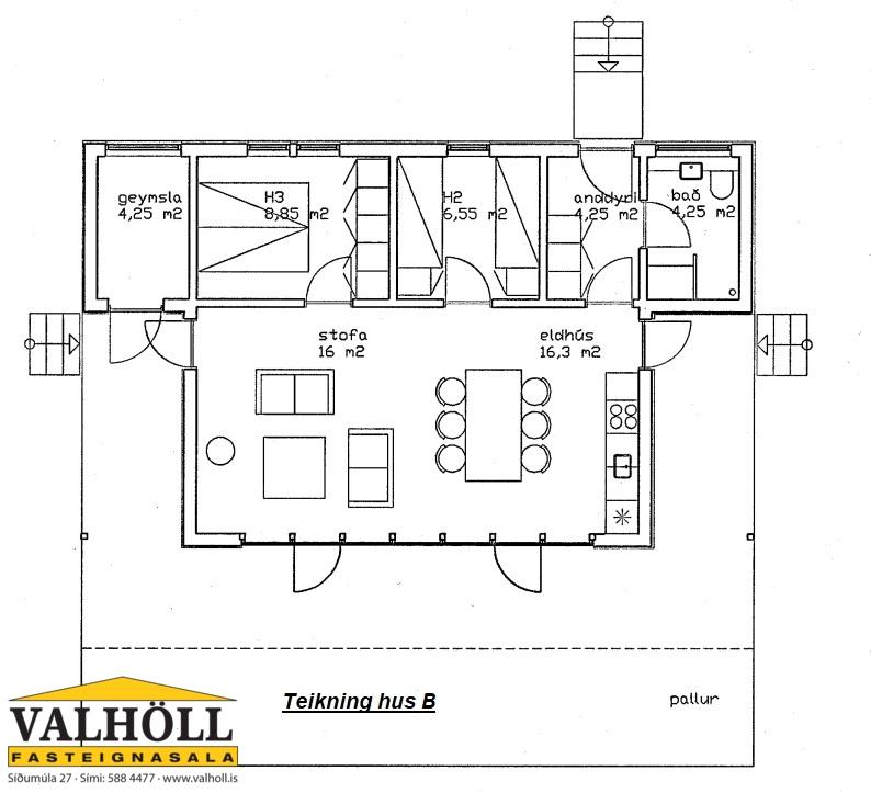 Hús 03 0101, 72,7 fm. :Skiptist í anddyri, baðherbergi, 2 herbergi og gott miðrými með eldhúsi opnu við stofu.