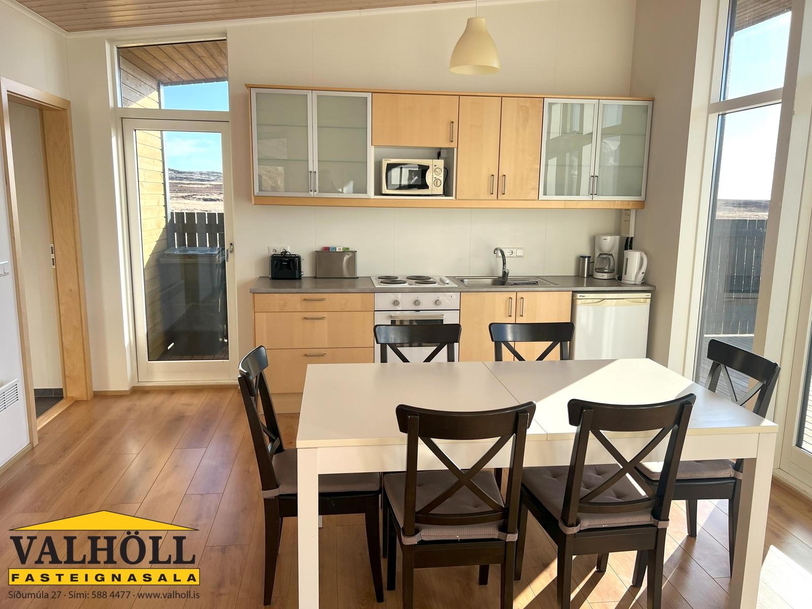 Geymsla hússins er með sér inngangi. Parket er á gólfum, viðarinnrétting er í eldhúsi með eldavél. Húsið er fullbúið húsgögnum sem fylgja með.