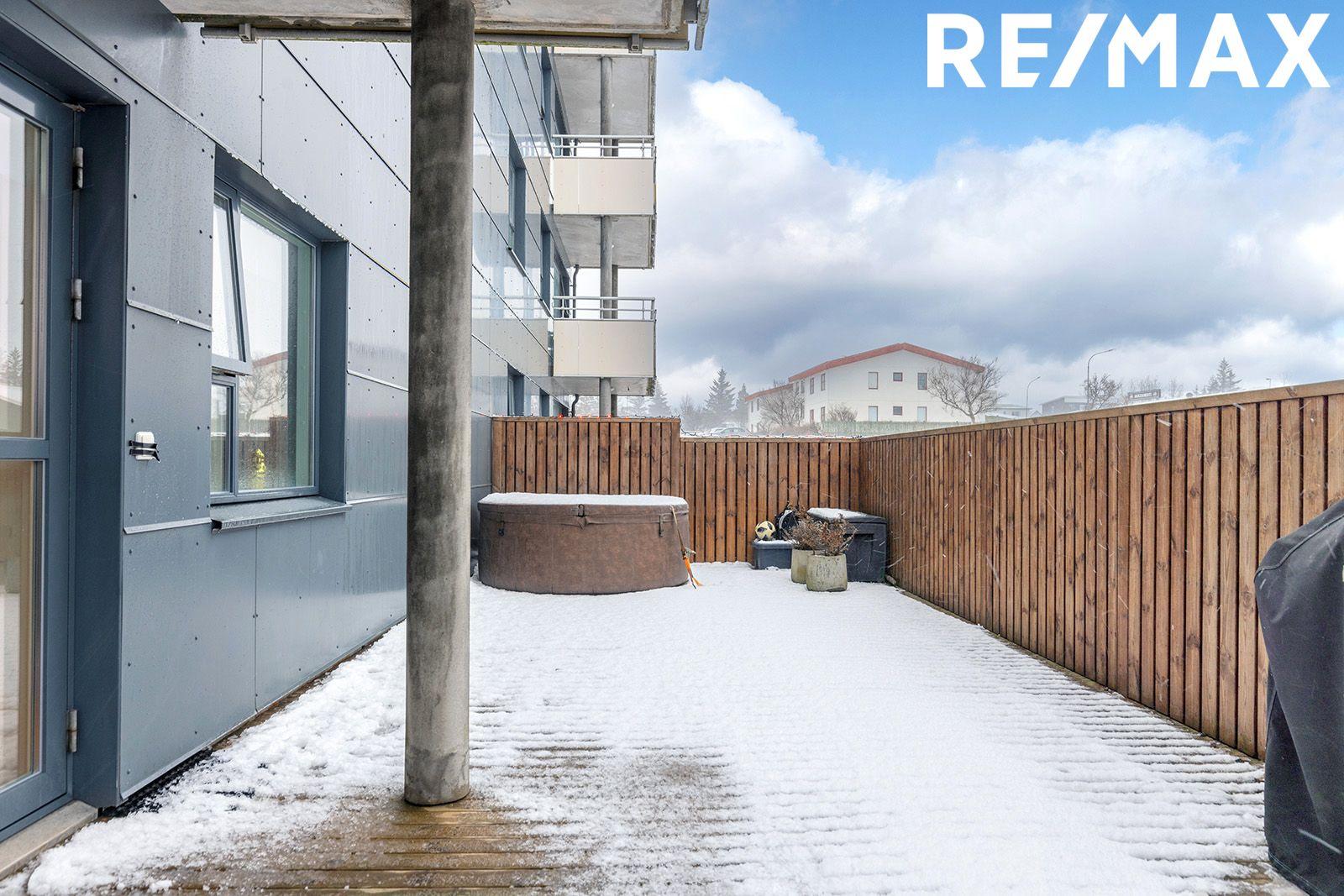 Góður sér inngangur. Rúmgóð forstofa með fataskáp. Gott hol. Tvö góð svefnherbergi með góðum skápum. Rúmgott þvottahús. Fallegt flísalagt baðherbergi með glugga, gott baðkar með sturtuaðstöðu og vönduð baðinnrétting. Björt og falleg stofa með útgengi á stóra afgirta verönd. Sérlega fallegt eldhús með fallegri innréttingu og vönduðum tækjum. Gólfefni eru parket og flísar. Geymsla í kjallara ásamt hefðbundinni sameign. Íbúðinni fylgir bílastæði í bílakjallara með tengi fyrir hleðslustöð. Mjög gott aðgengi. Sameiginleg hjòla- og vagnageymsla.