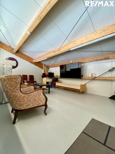 Skipulag telur: Neðri hæð er salerni, inngangshurð og stóri iðnaðarhurð að stærð h 4,20 m og b 4,0 m. Húsið er smíðað úr límtrésgrind og klætt með 107 mm yleiningum með litaðri stálklæðningu að innan og utan. Milliloft er yfir c.a 1/3 af húsinu og er notað sem skrifstofa.