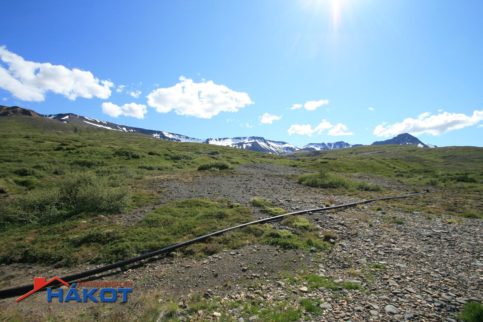 Hitaveita og rafmagn komið á staðinn, kaupandi greiðir inntaksgjöld.