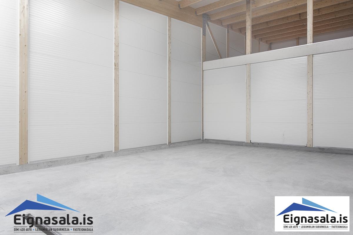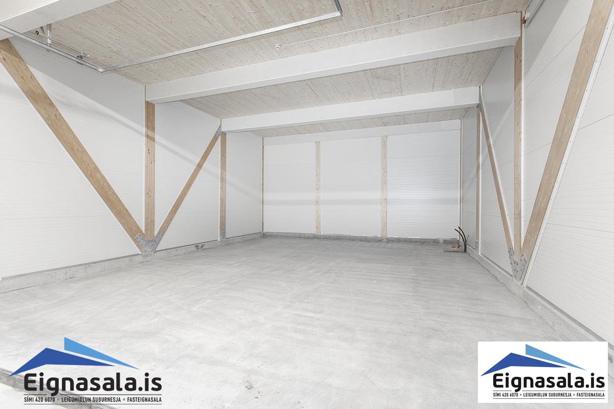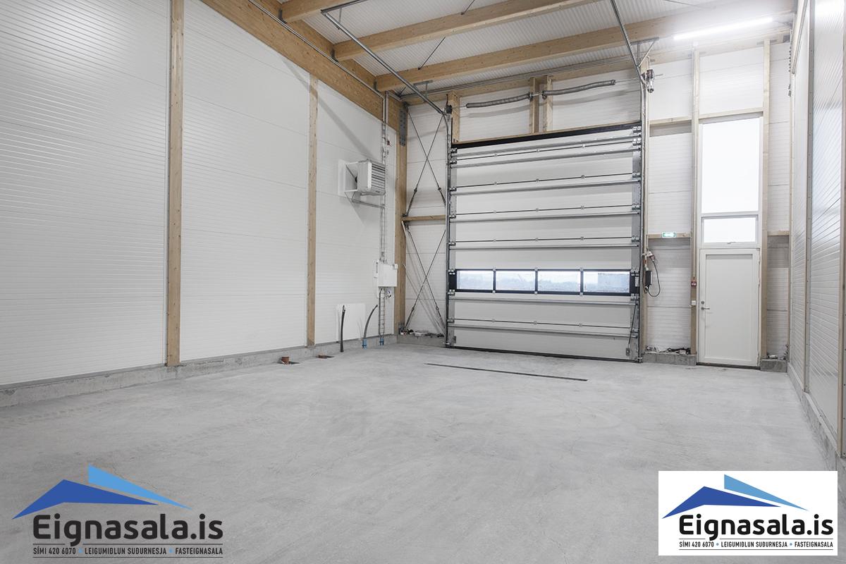 Eignasala.is kynnir Flugvelli 15, 230 Reykjanesbæ. Bil merkt 113 er 100 m2 verð kr 35.000.000. Flugvellir 15 er ríflega 3.338 fermetra atvinnuhúsnæði í nýjum þjónustukjarna Reykjanesbæ. Húsnæðið liggur við Reykjanesbrautina og verður á tveimur hæðum, þ.e.a.s. 2.217 fermetrar á 1. hæð og 1.121 fermetrar á 2. hæð. Um er að ræða 22 stk atvinnu eða geymslubil byggð úr límtré og yleiningum. Tvær stærðir eru á geymslubilum, minni bilin eru um 100 fm frá kr 35.000.000 en þau stærri frá 200 fm kr 52.000.000. Húsið er reist úr límtré sem reist er á staðsteyptar undirstöður. Húsið er klætt að utan með yleiningum sem koma með innbrenndum lit. Litir eru almennt dökkgráir. Flassningar verða í einkennandi litum fyrir hvern matshluta. Húsin eru reist á staðsteyptum sökkli. Samanlögð heildar lóðarstærð er 5.079 fm. Sér inngangur verður inn í hvert bil. Að austanmegin er ein 400x450 cm aksturhurð og ein gönguhurð. Vestanmegin er ein 400x350 cm aksturshurð og ein gönguhurð. Nánari lýsing Sökklar og botnplata: Járnbent steinsteypa einangruð með 100 mm plasteinangrun að innanverðu. Útveggir: Límtrésburðarvirki, Yleiningar með steinullarkjarna. Dökk gráar að utan og hvítar að innan. Þak: Límtrésburðarvirki, Yleiningar með steinullarkjarna, trapizuformuð þakklæðning. Dökk gráar að utan og hvítar að innan. Raflagnir: Lýsing utanhúss er fullfrágengin LED lýsing. Útilýsingu er stýrt með sólúri í aðaltöflu. Lagnir: Þakniðurföll og drenlagnir i lóð. Öll inntök / mælagrindur fyrir hvern matshluta eru í sameiginlegum inntaksrýmum. Inntaksrýmin eru aðskilin fyrir aðaltöflu annarsvegar og heitt og kalt neysluvatn, hins vegar. Gluggar og útihurðir: Eru úr áli. Allt gler er K-gler. Litur Dökk grár. Flekahurðir með vindstyrkingu án mótor, tengimöguleiki fyrir sjálfvirka opnun iðnaðarhurða. Litur Dökk grár. Gólfplata: Gólfplata hússins er einangruð, járnbent og staðsteypt. Gólf hússins eru slípuð steinsteypa. Milli gólf hússins eru úr timbri. Límtrésbitar í úthring milli gólfa og gólfbitar festir í sperruskó milli límtrésbita. Veggir: Veggir innanhúss eru steinullarfylltar yleiningar, hvítar að lit. Raflagnir: Vinnulýsing og rofi í hverju geymslubili, mótor fyrir loftræstingu mun virkjast með ljósarofa. Tvöfaldur tengill í töflu.