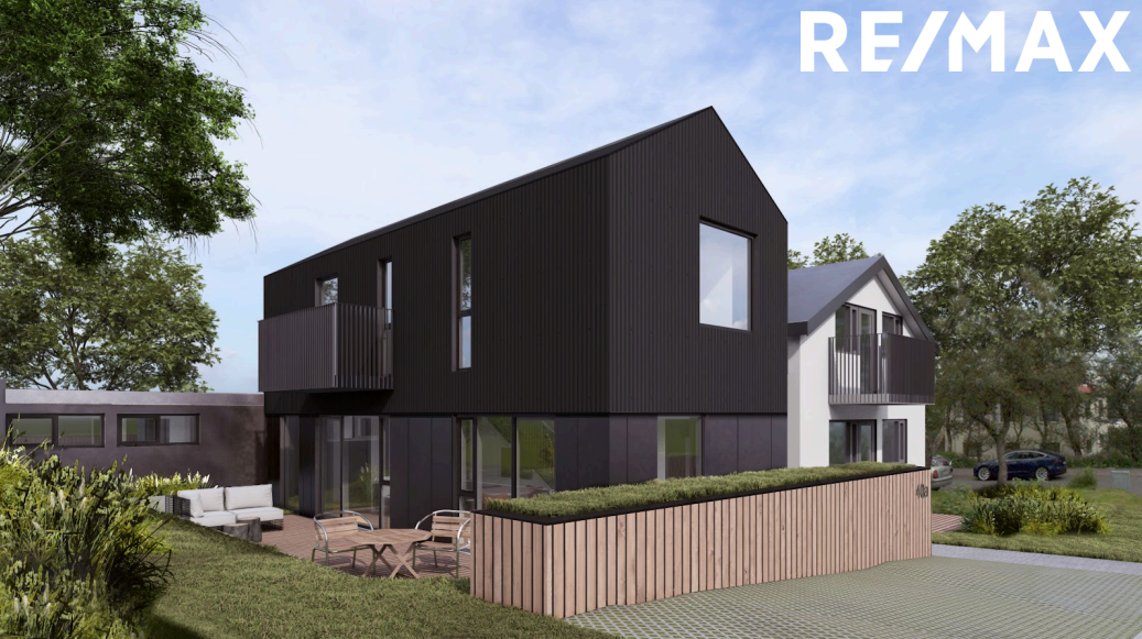 Nýja húsið fær sér garð sem mun verða mjög skjólsæll. Það er einstaklega fallegt og fellur vel að bæði framhúsinu og öðru umhverfi.