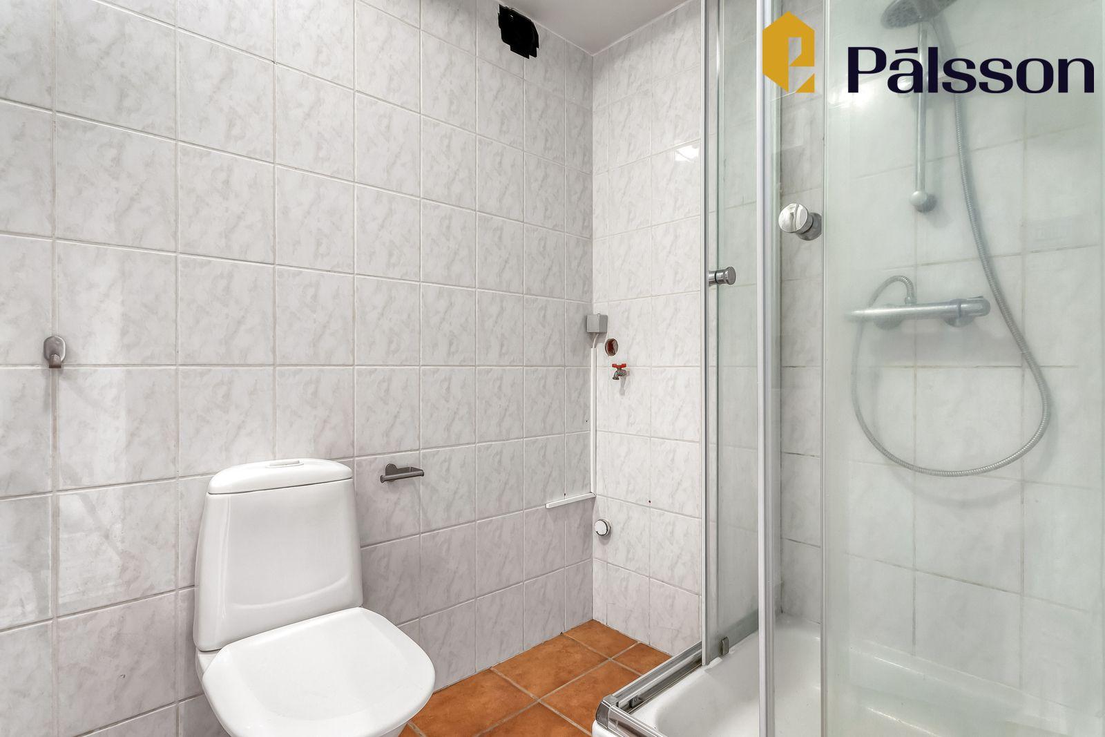 Baðherbergi: baðherbergið er flísalagt í hólf og gólf. Hvít innrétting, salerni og sturta. Tengi er fyrir þvottavél.