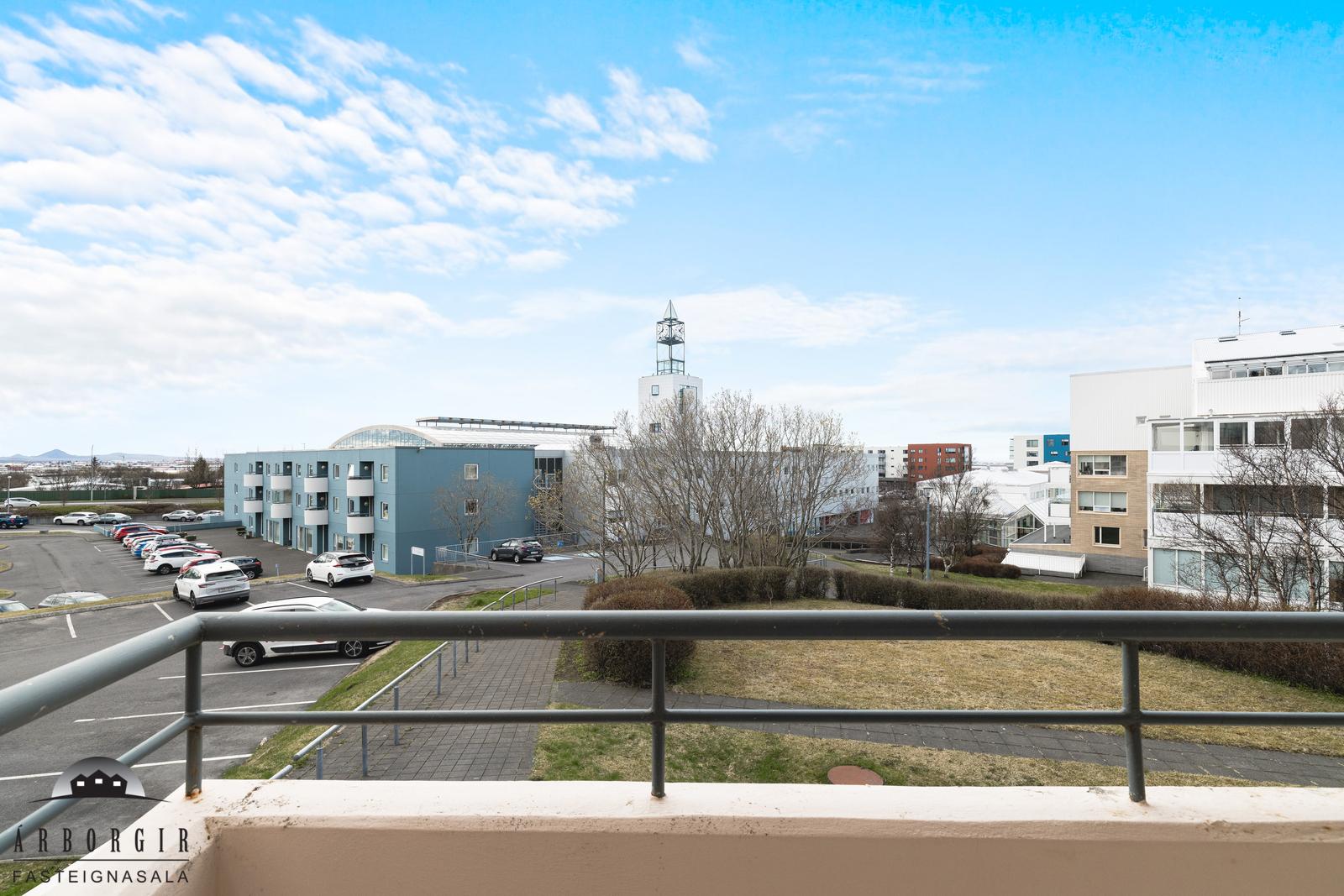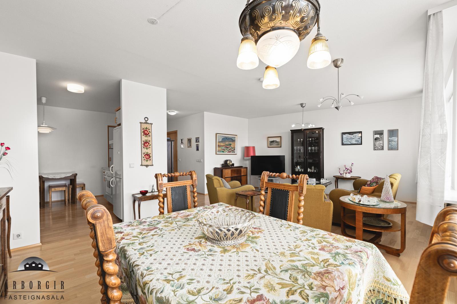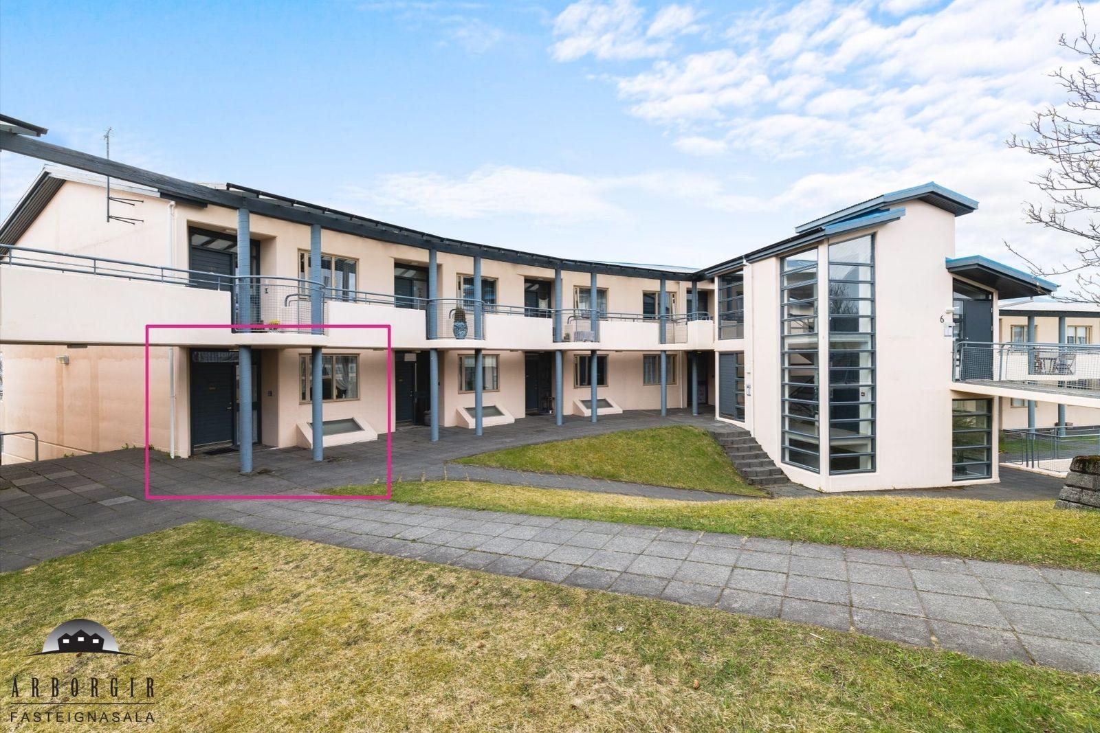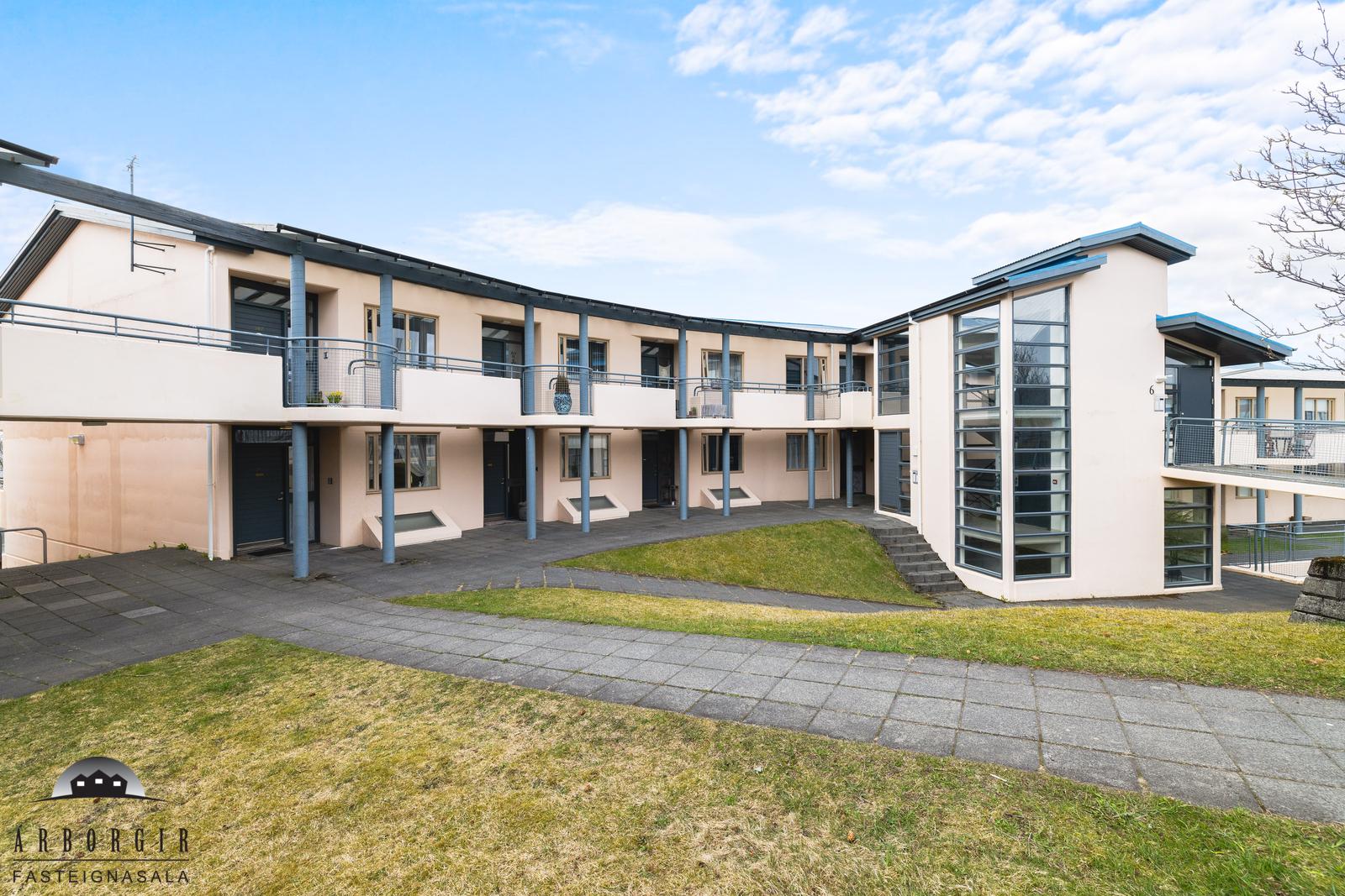 Nánari lýsing: Forstofan er flísalögð og með fataskáp. Svefnherbergið er parketlagt og rúmgott og með fataskápum. Baðherbergið er flísalagt bæði gólf og hluti veggja, þar er salerni, innrétting með handlaug, rúmgóð sturta og tengi fyrir þvottavél og þurrkara. Stofan er parketlögð, opin og rúmgóð. Úr stofunni er útgengt á svalir. Eldhúsið er parketlagt, þar er ljós innrétting með góðu skápaplássi. Þó eignin sé á annari hæð er gengið beint inn í hana af jarðhæð. Eignin er vel staðsett, stutt í alla helstu þjónustu, sundlaug, verslun og heilsugæslu.